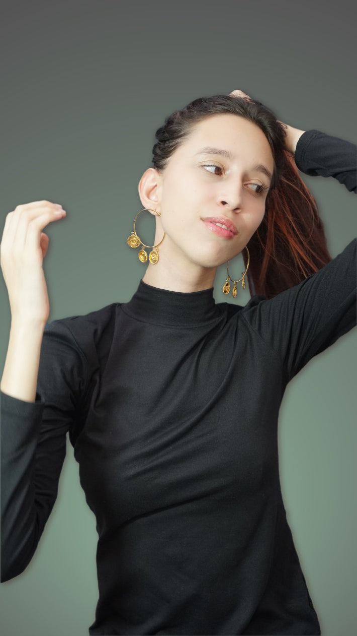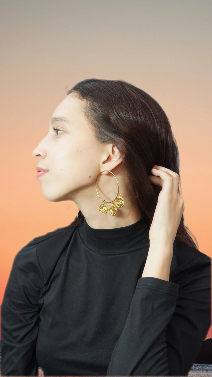 Aretes Dorados con rueditas plata