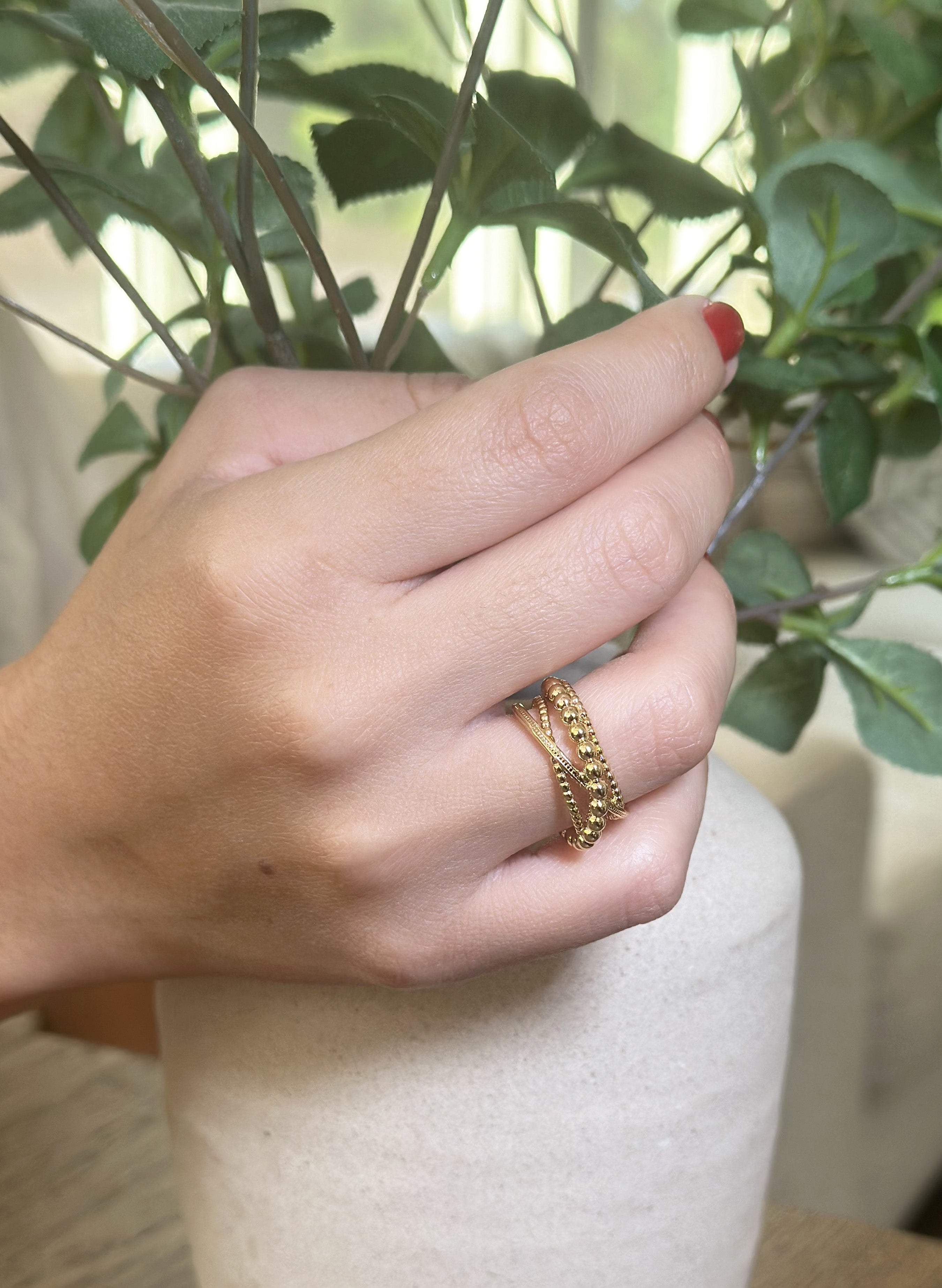 Hypoallergenic rhodium-plated steel ring with gold plating