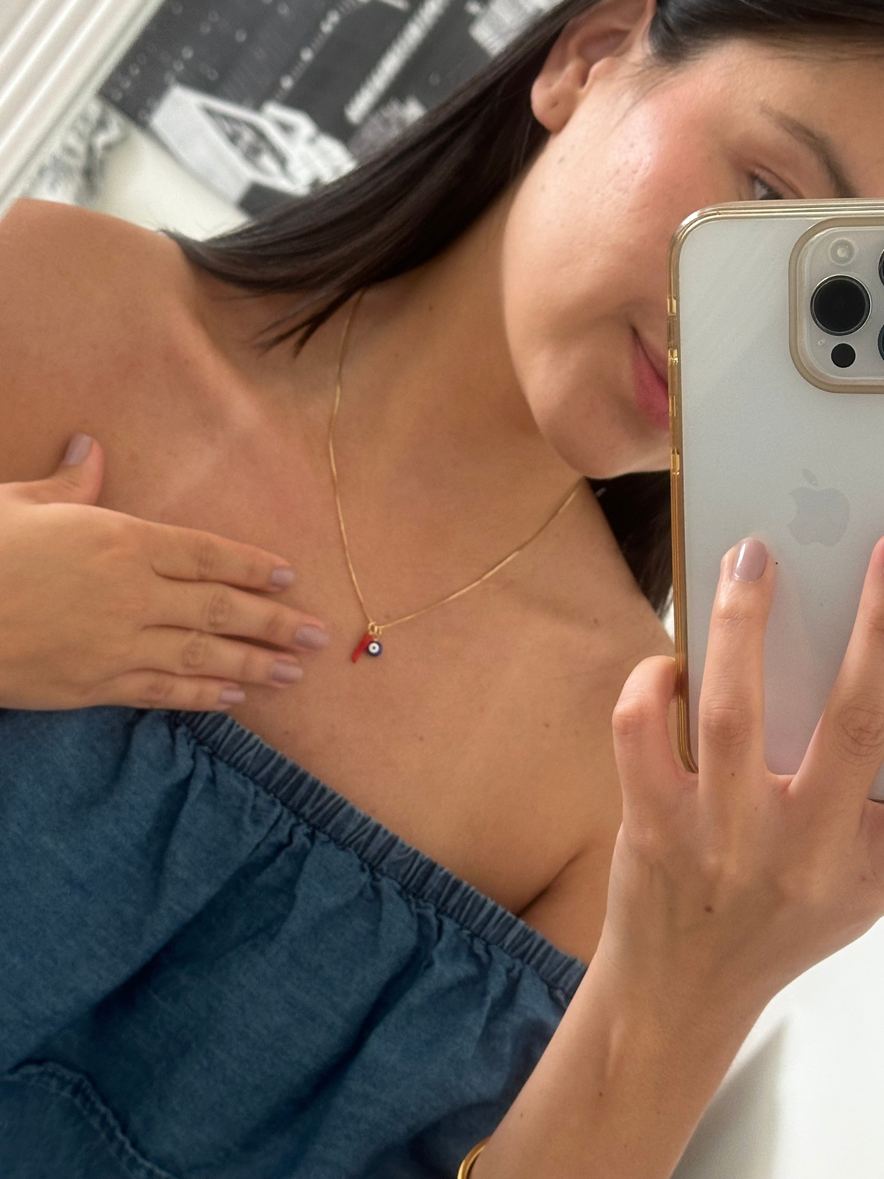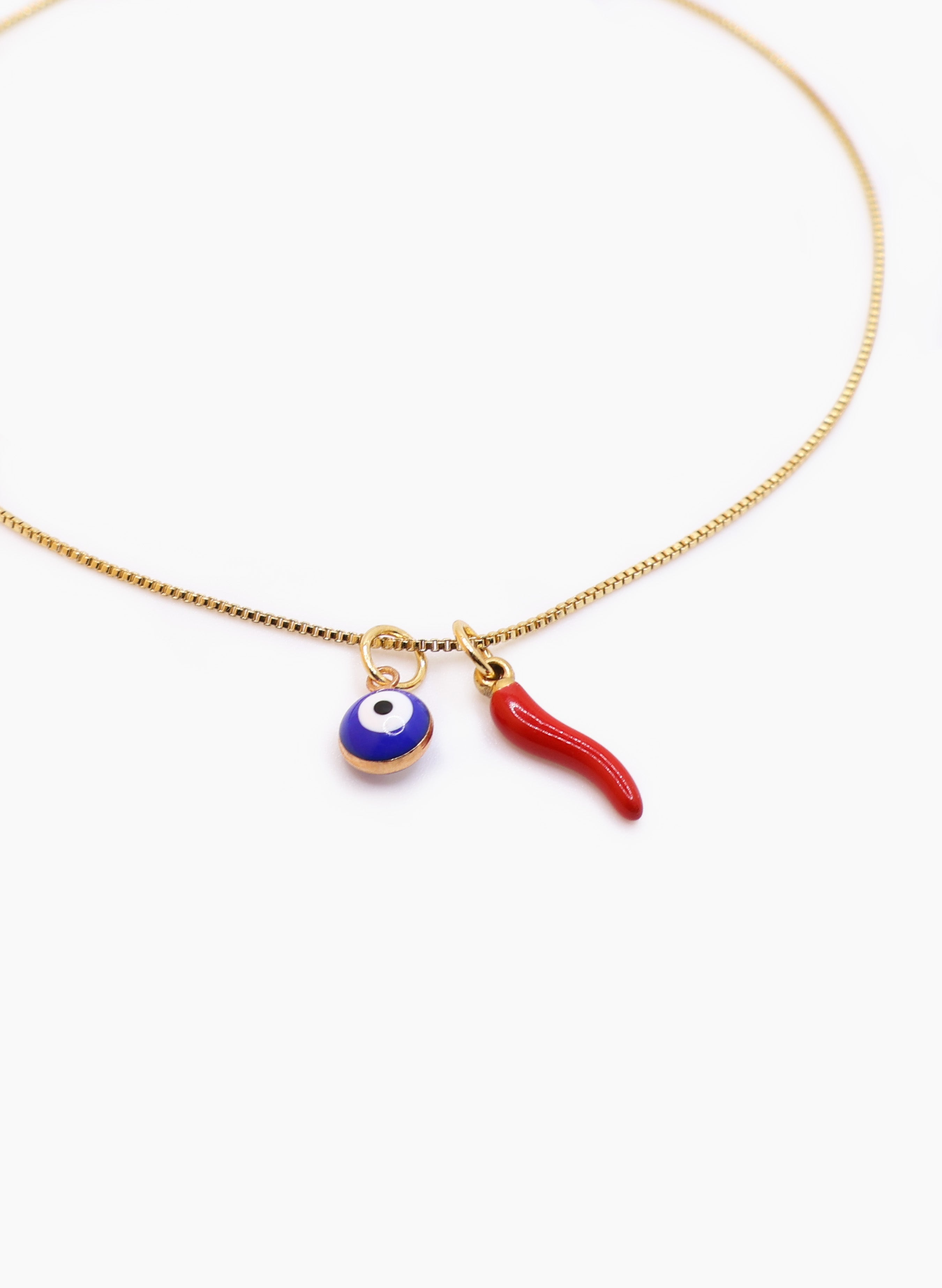 Cadena ajustable en rodio con baño en oro de 24k y dijes en acrílico.