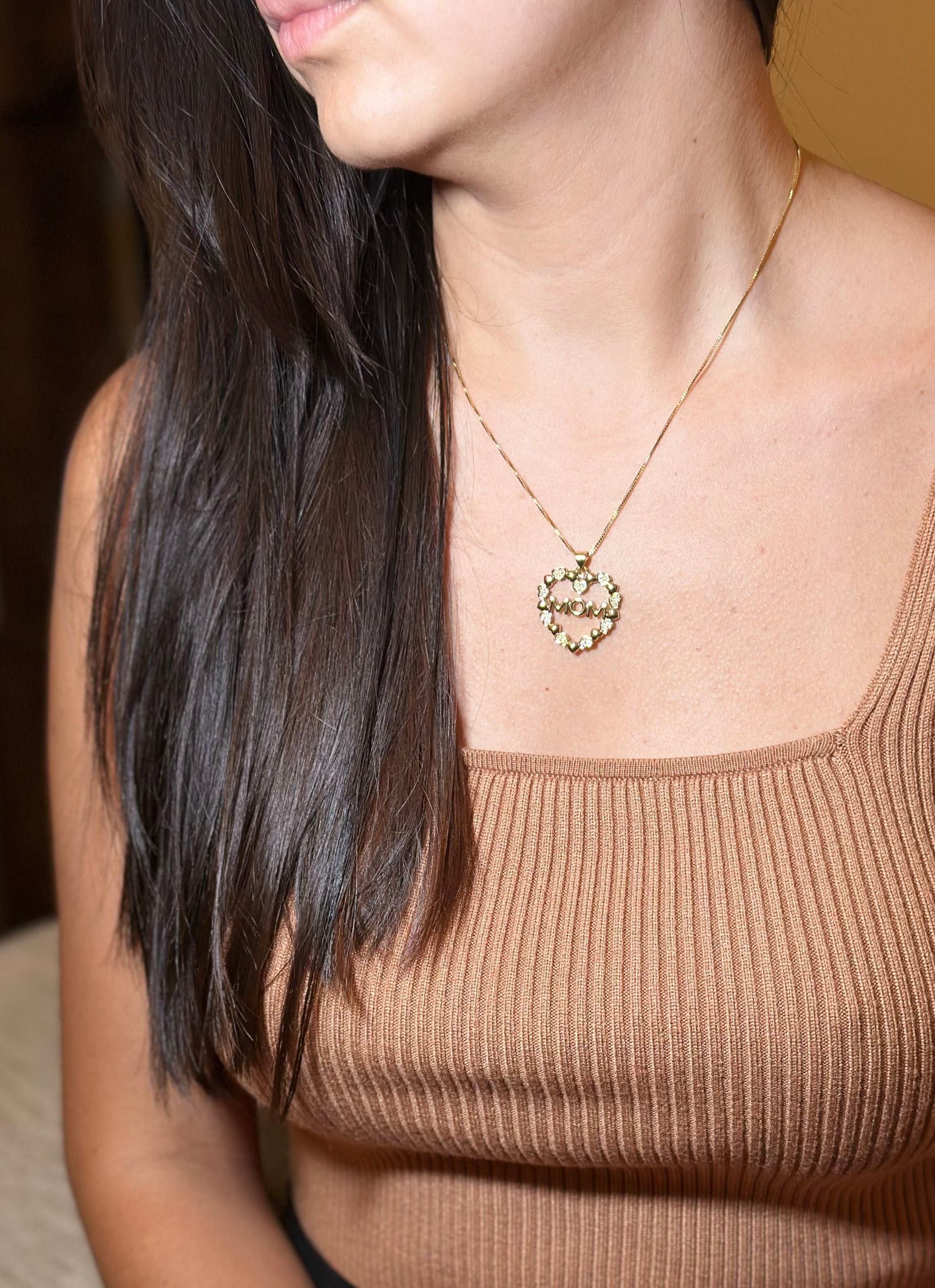 Necklace made of rhodium-plated steel with 24k gold plating and zircons on the pendant.