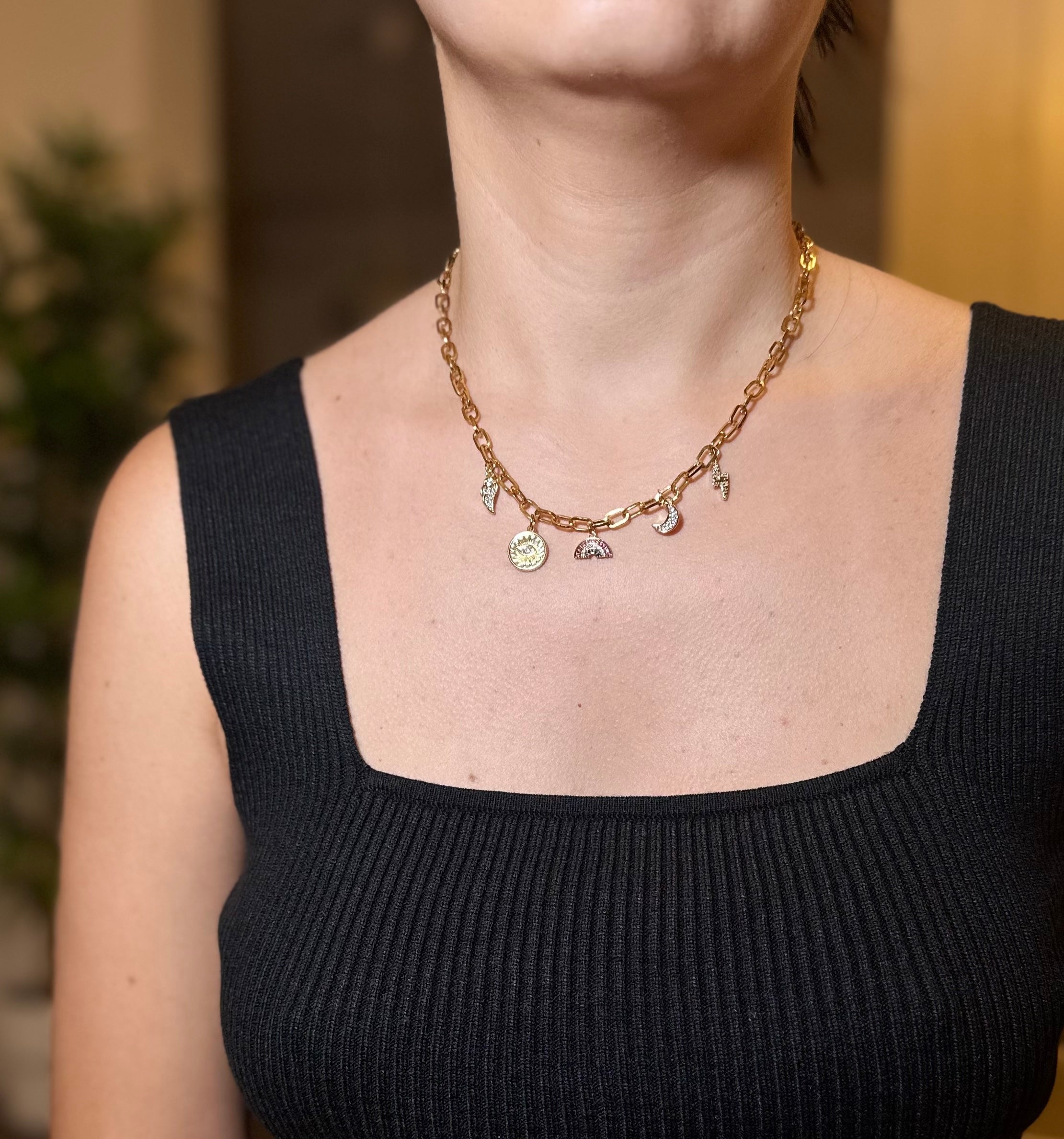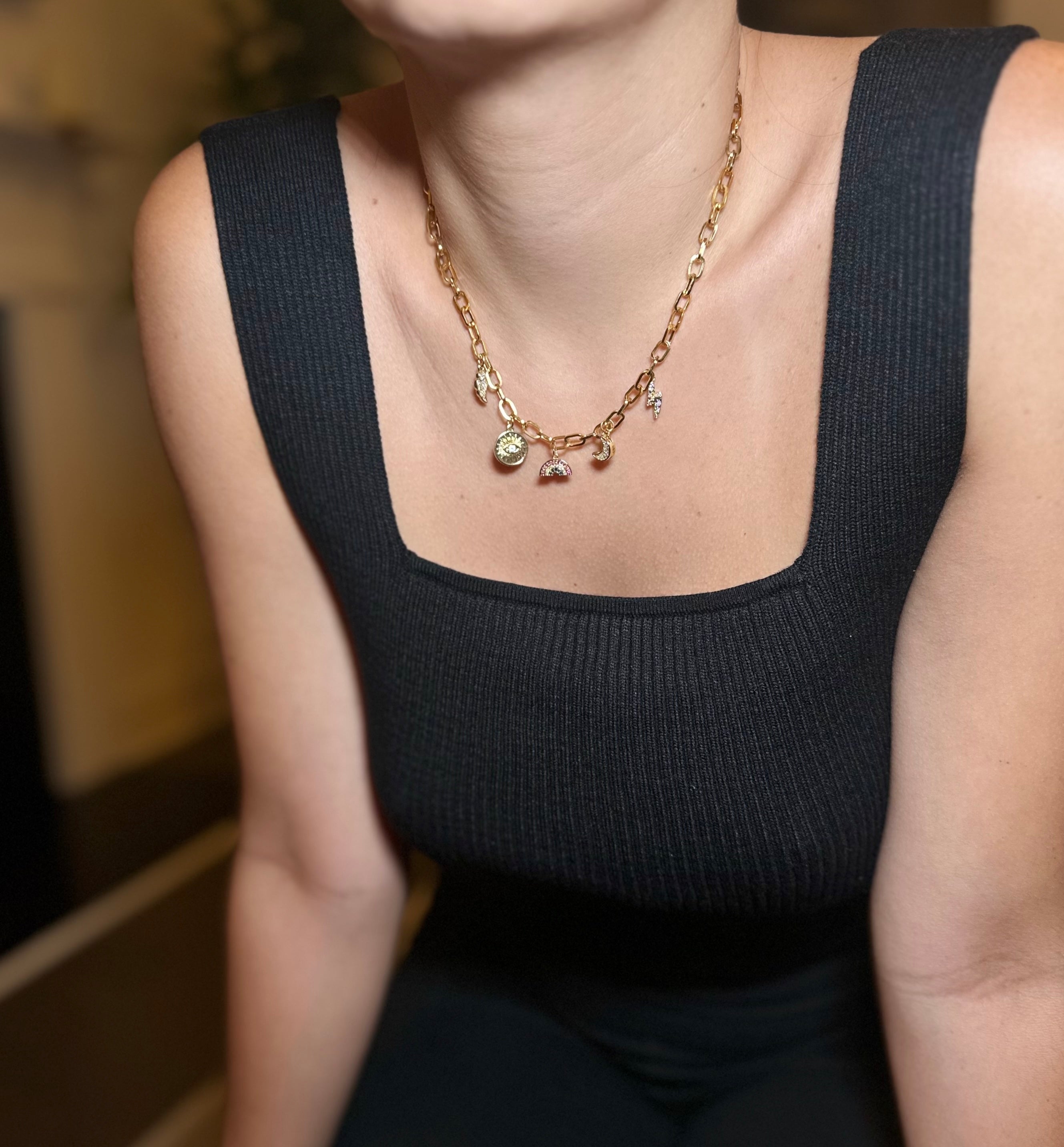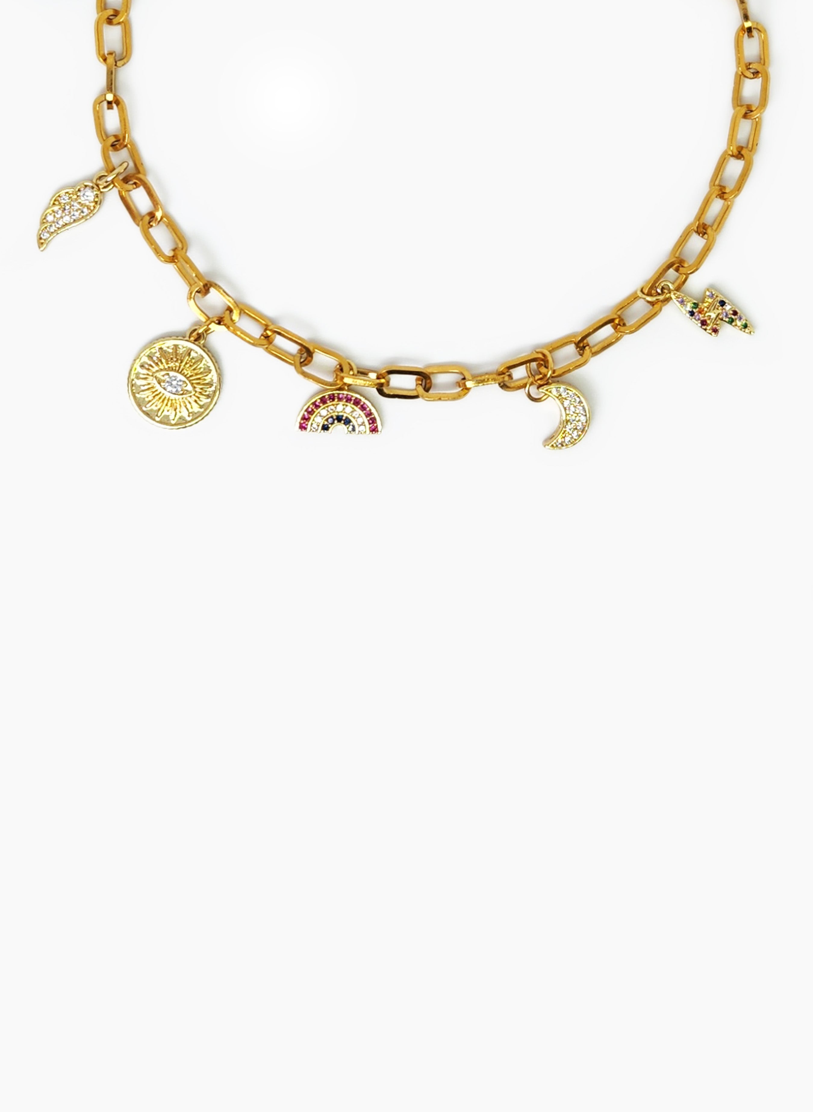 Chain made of steel, charms with 24k gold plating.