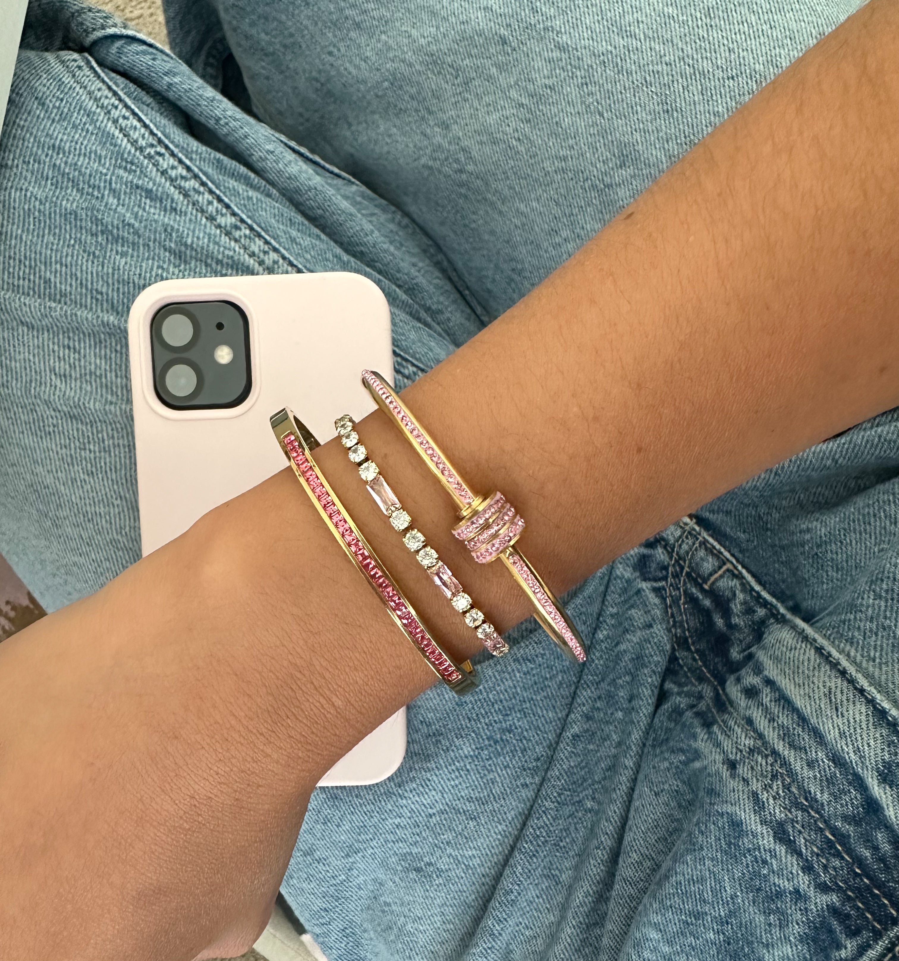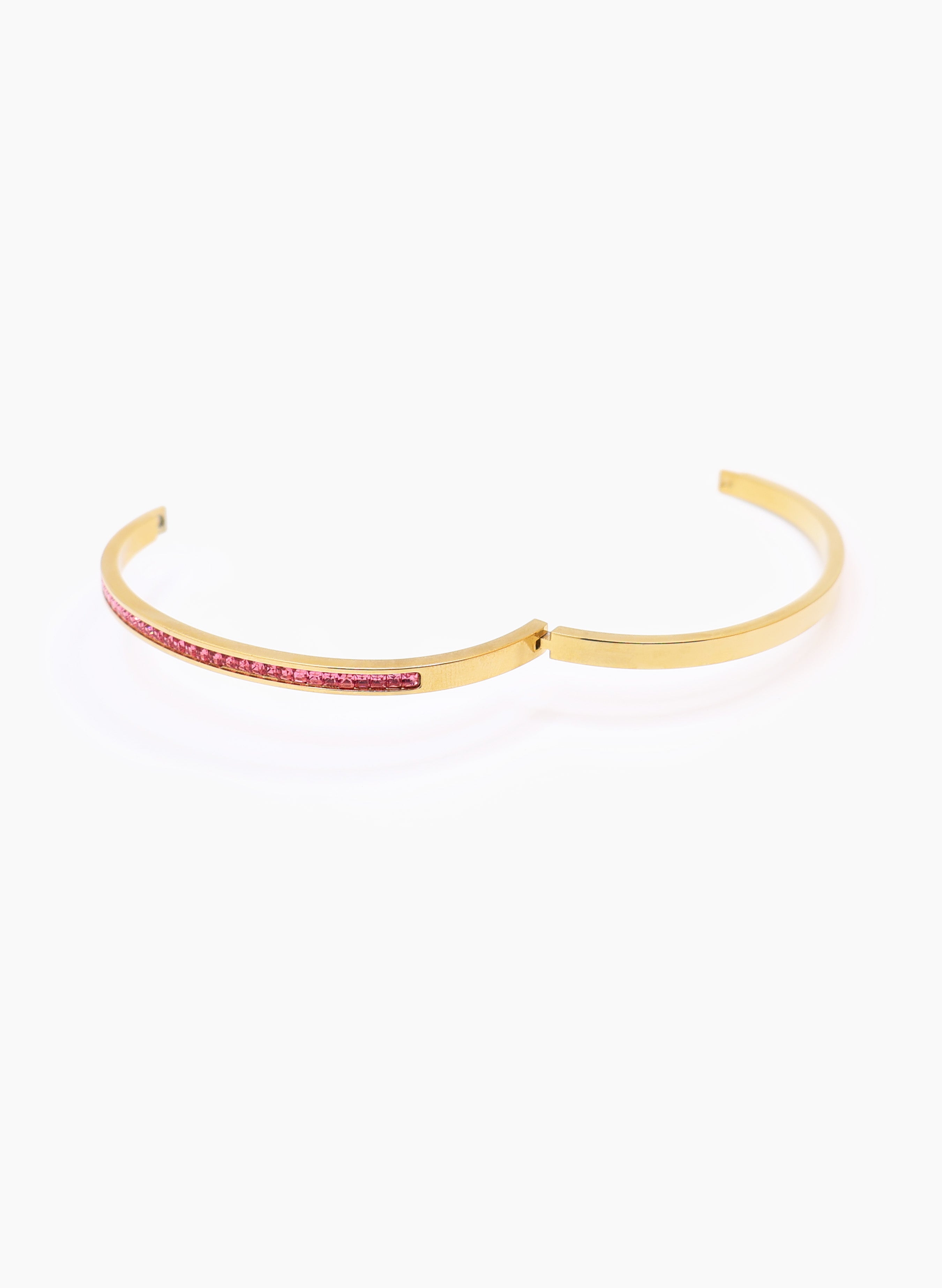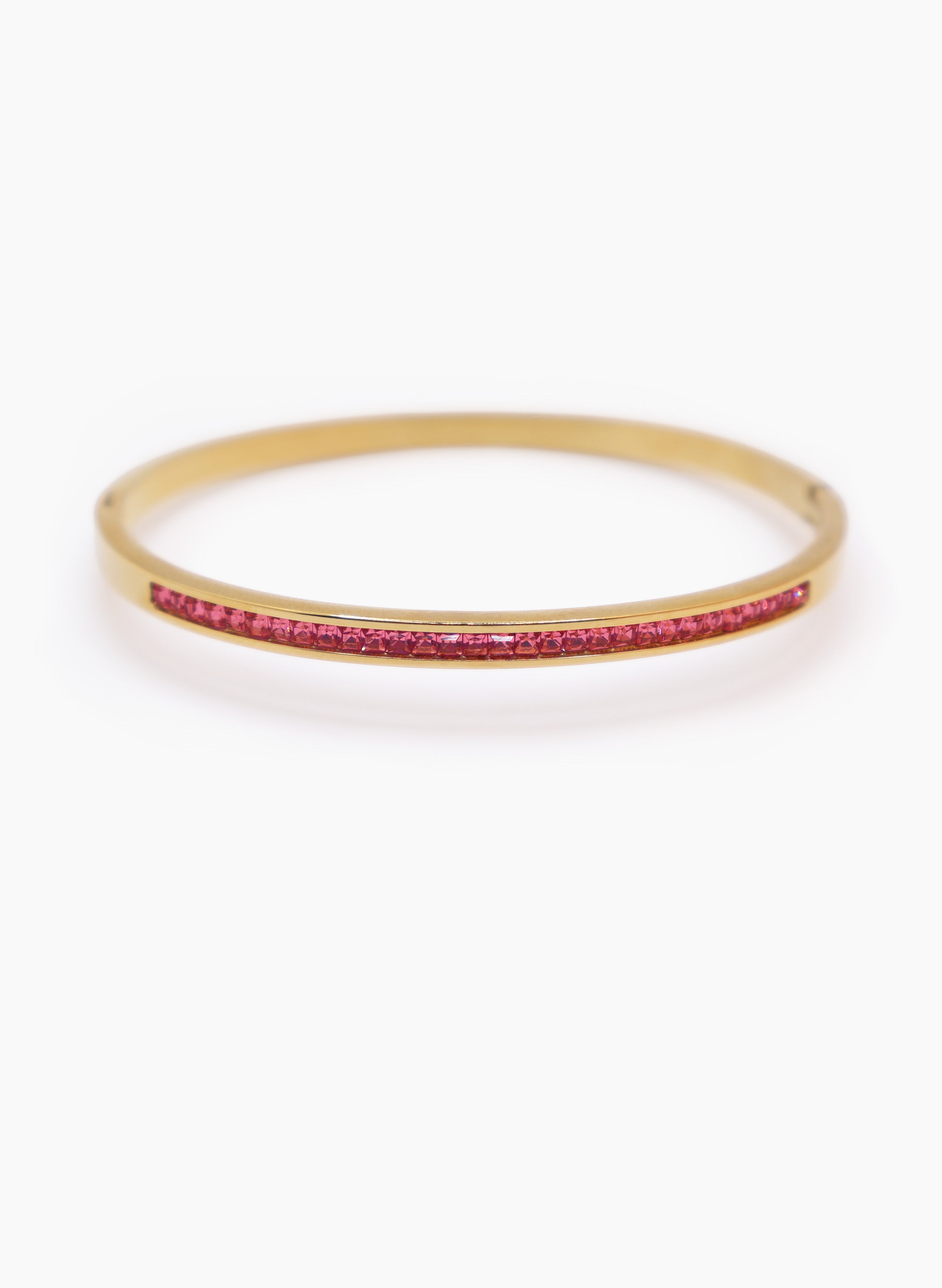 Brazalete hecho en acero inoxidable con circones en color fuchsia