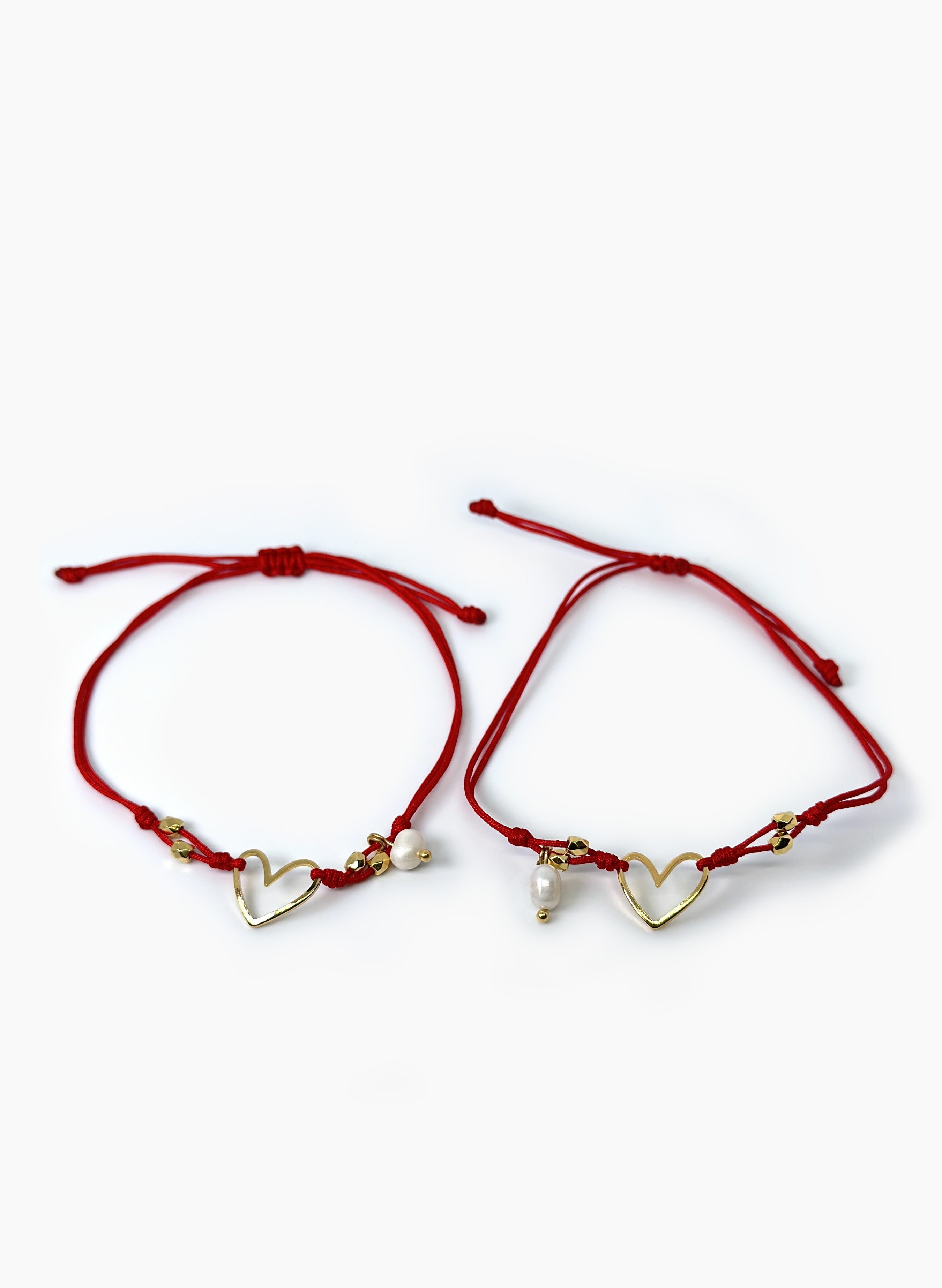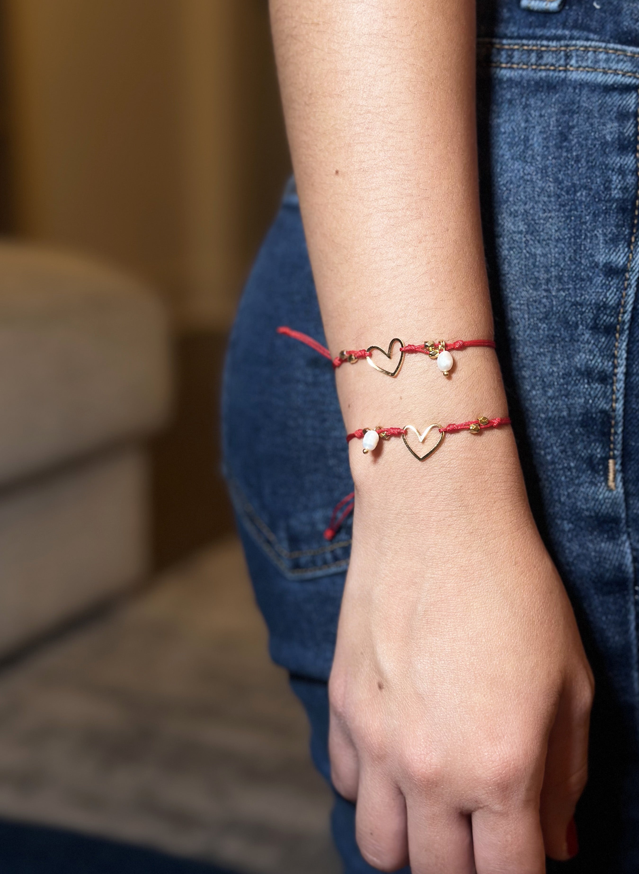 Set of 2 handmade bracelets, with gold-plated charms, sweet pearls and adjustable thread.