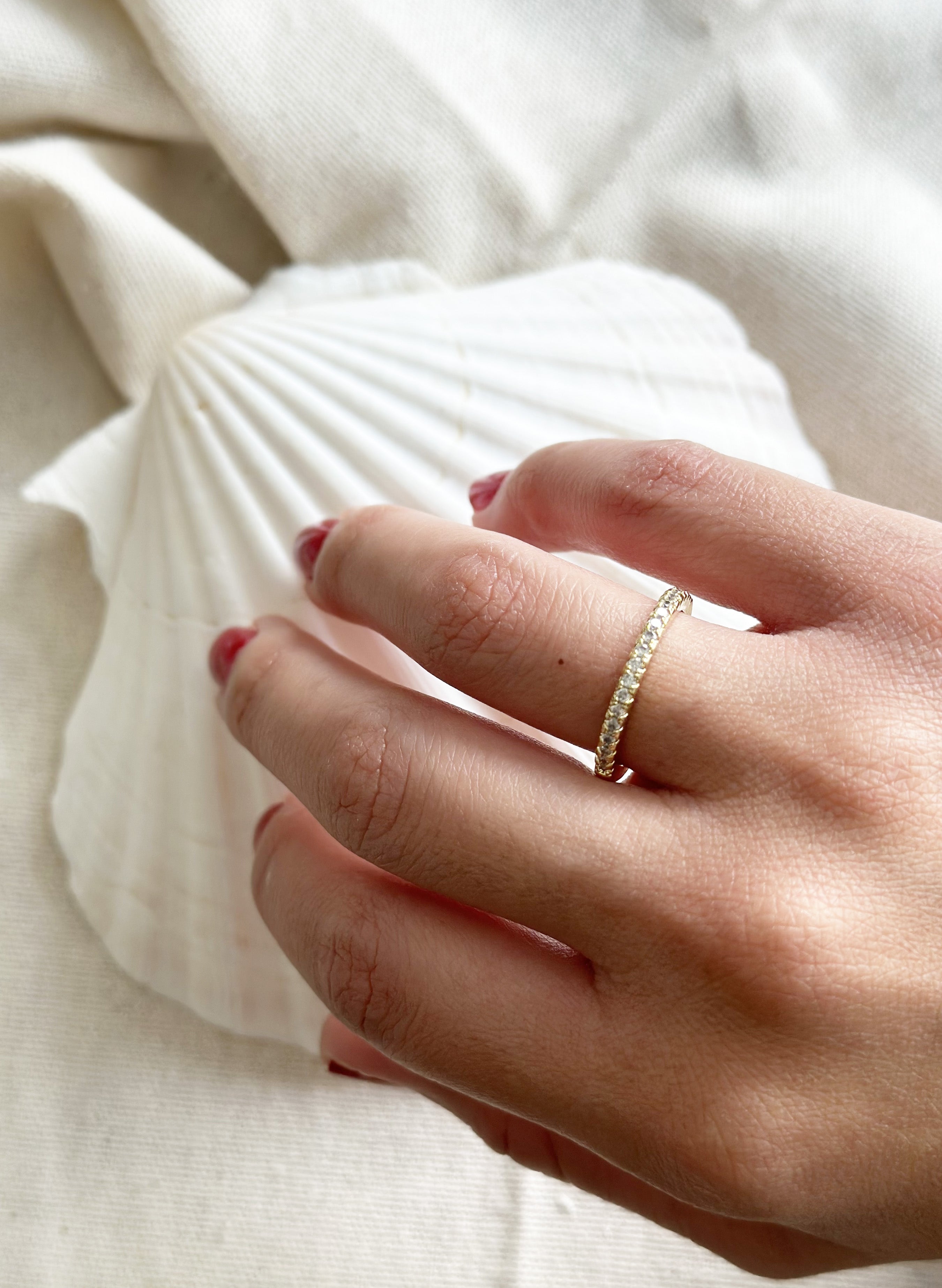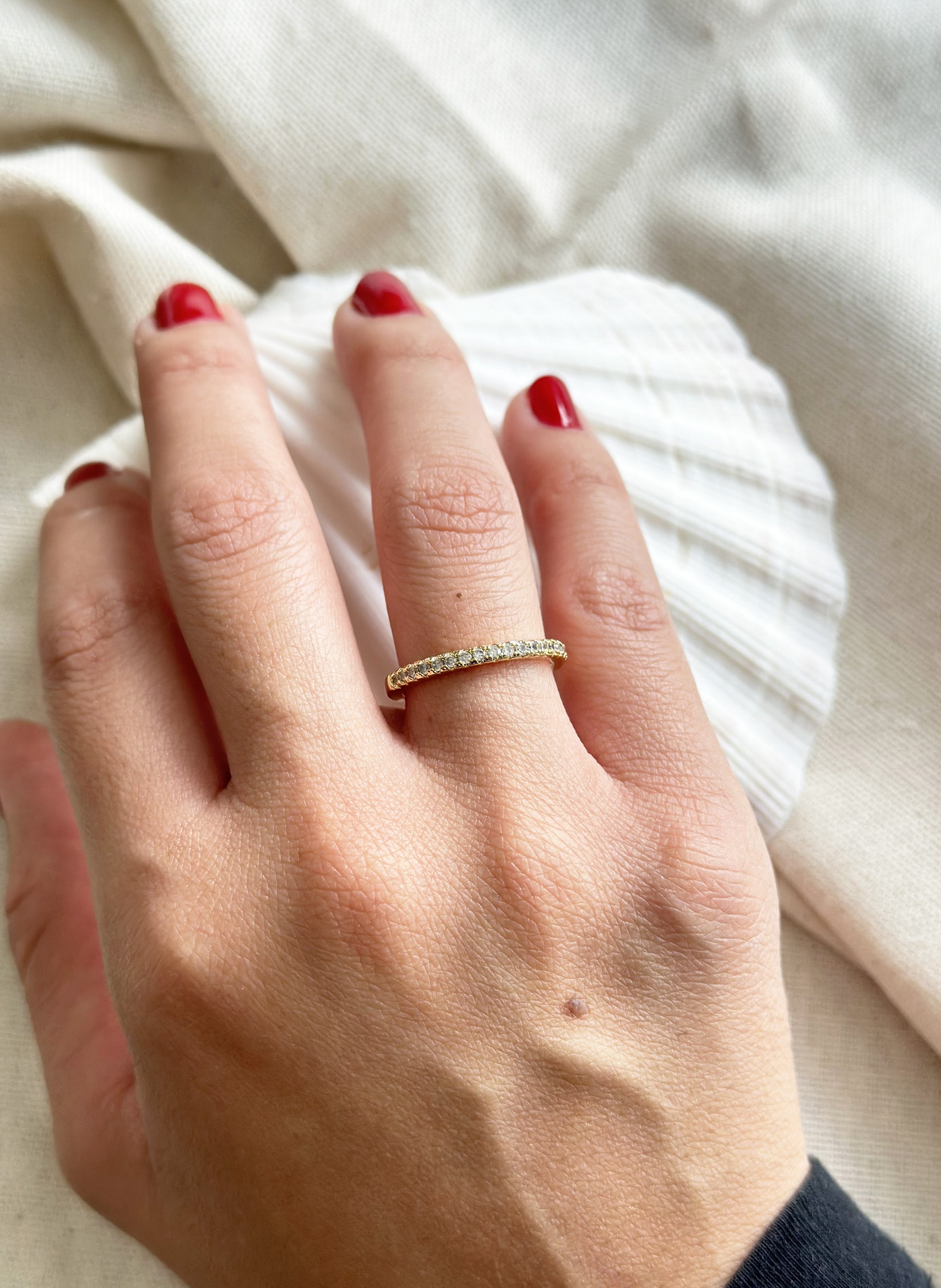 Anillo ajustable en acero rodinado hipoalergénico con baño en oro y piedras en zircón