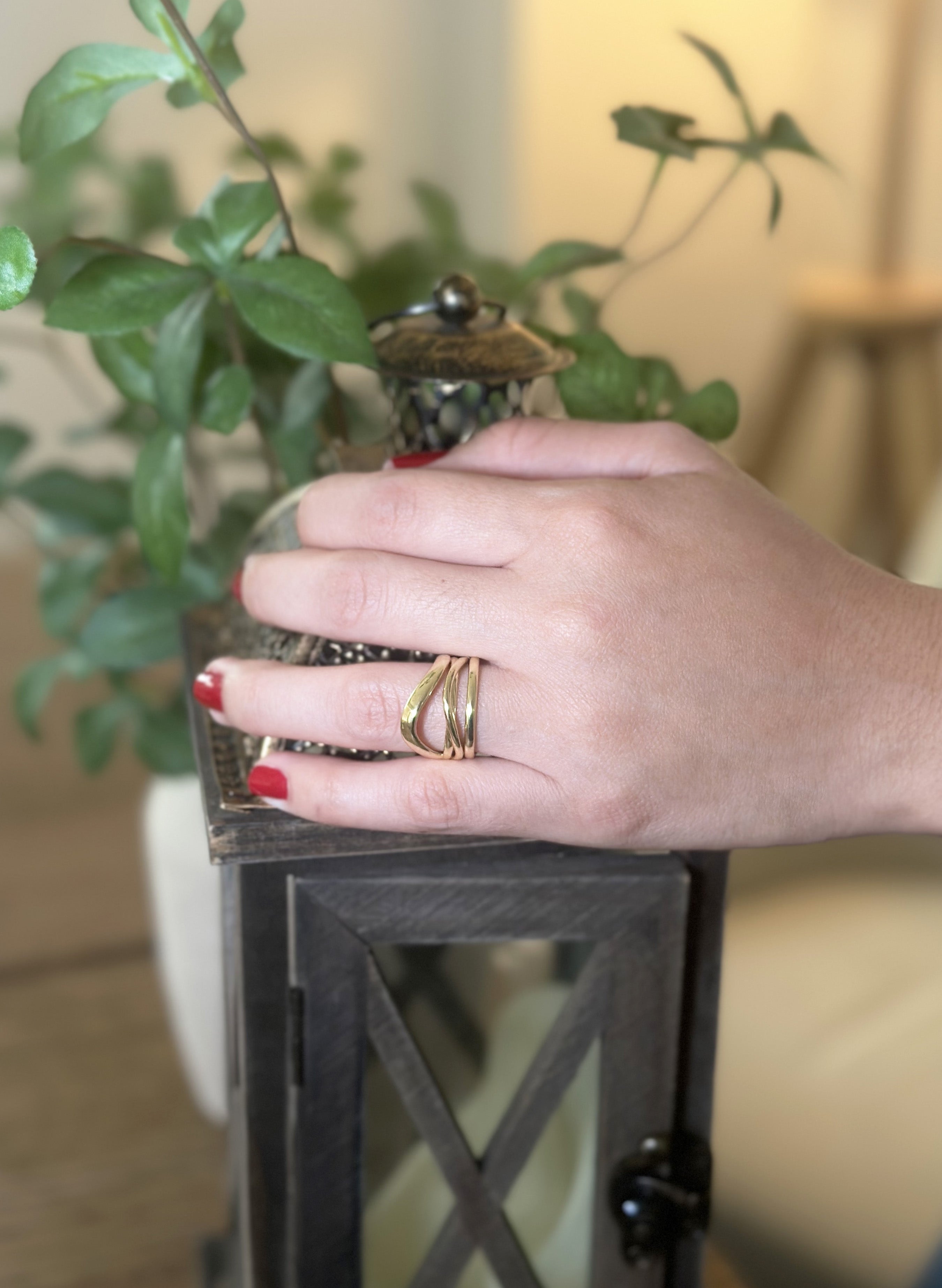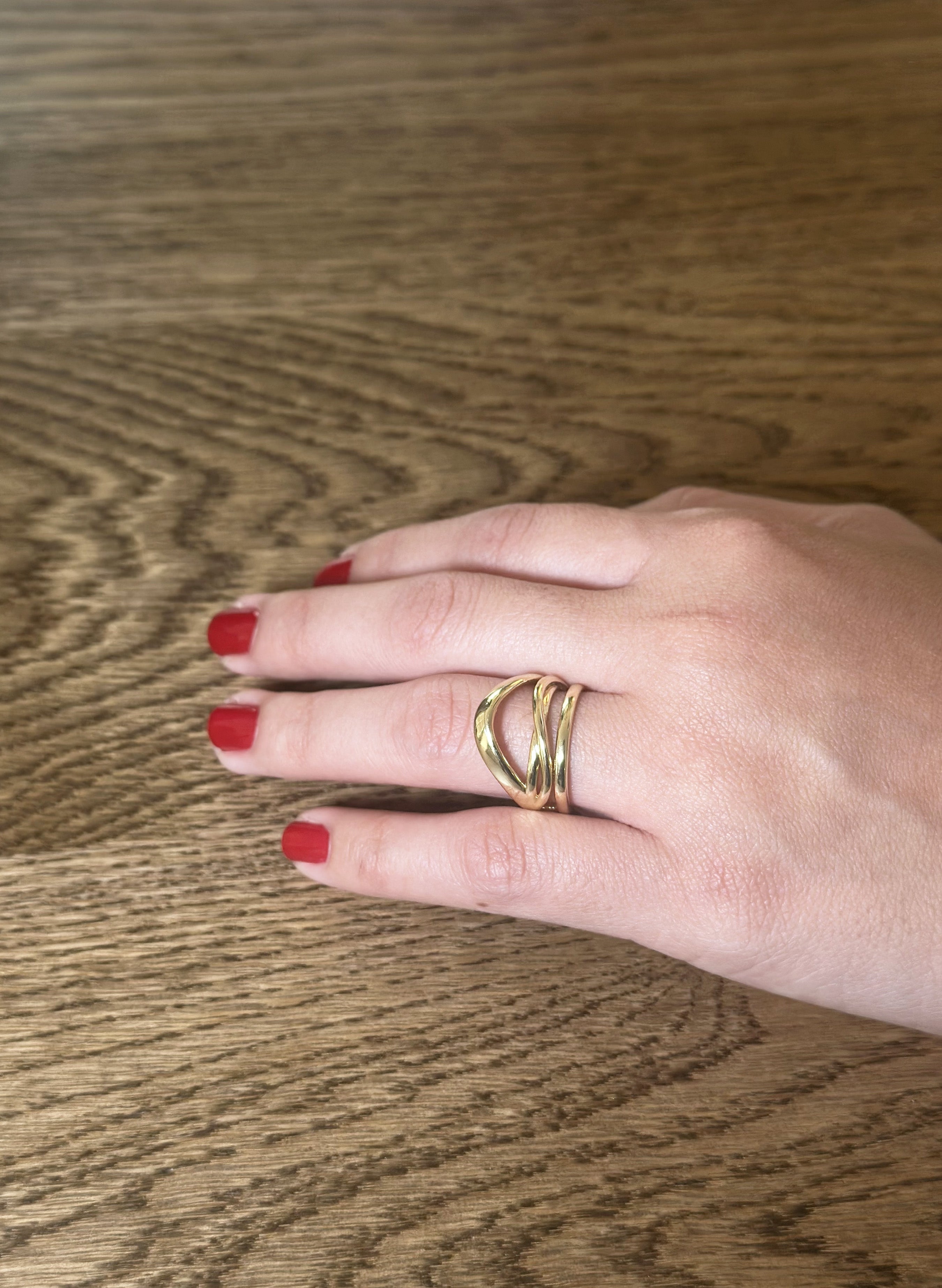Anillo en acero rodinado hipoalergénico con baño en oro