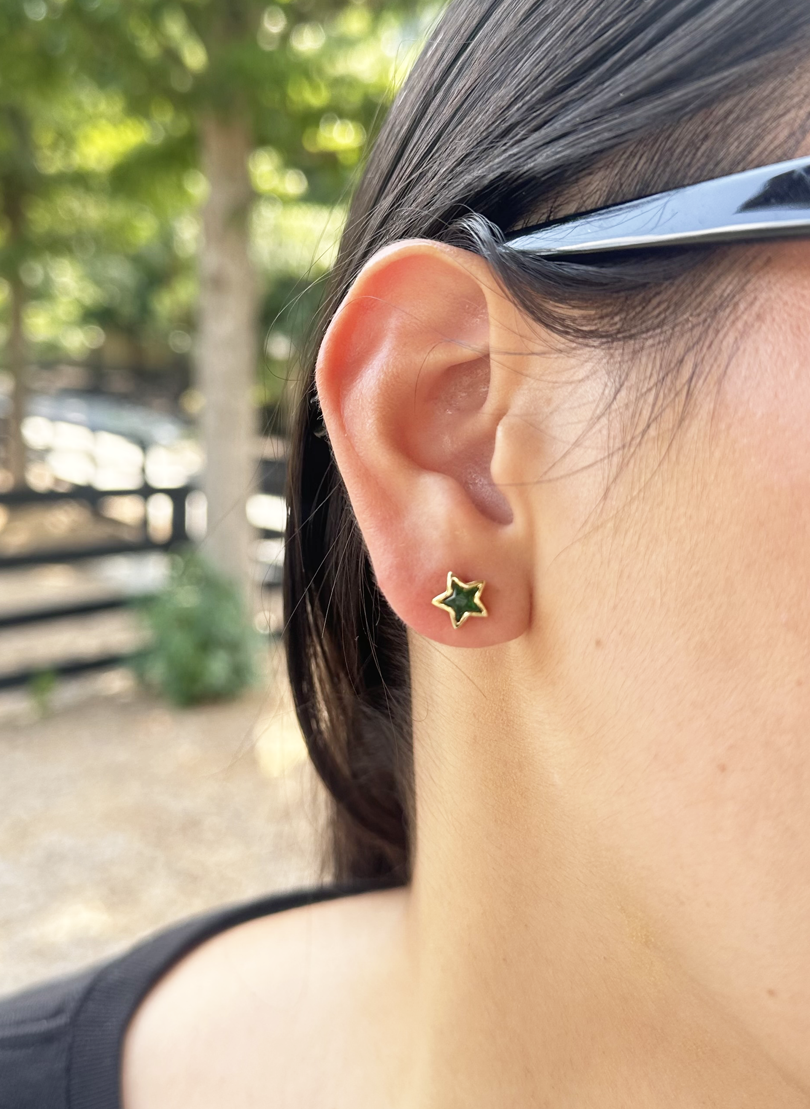 Aretes en forma de topito hipoalergénicos elaborados en rodio con zircones verdes.