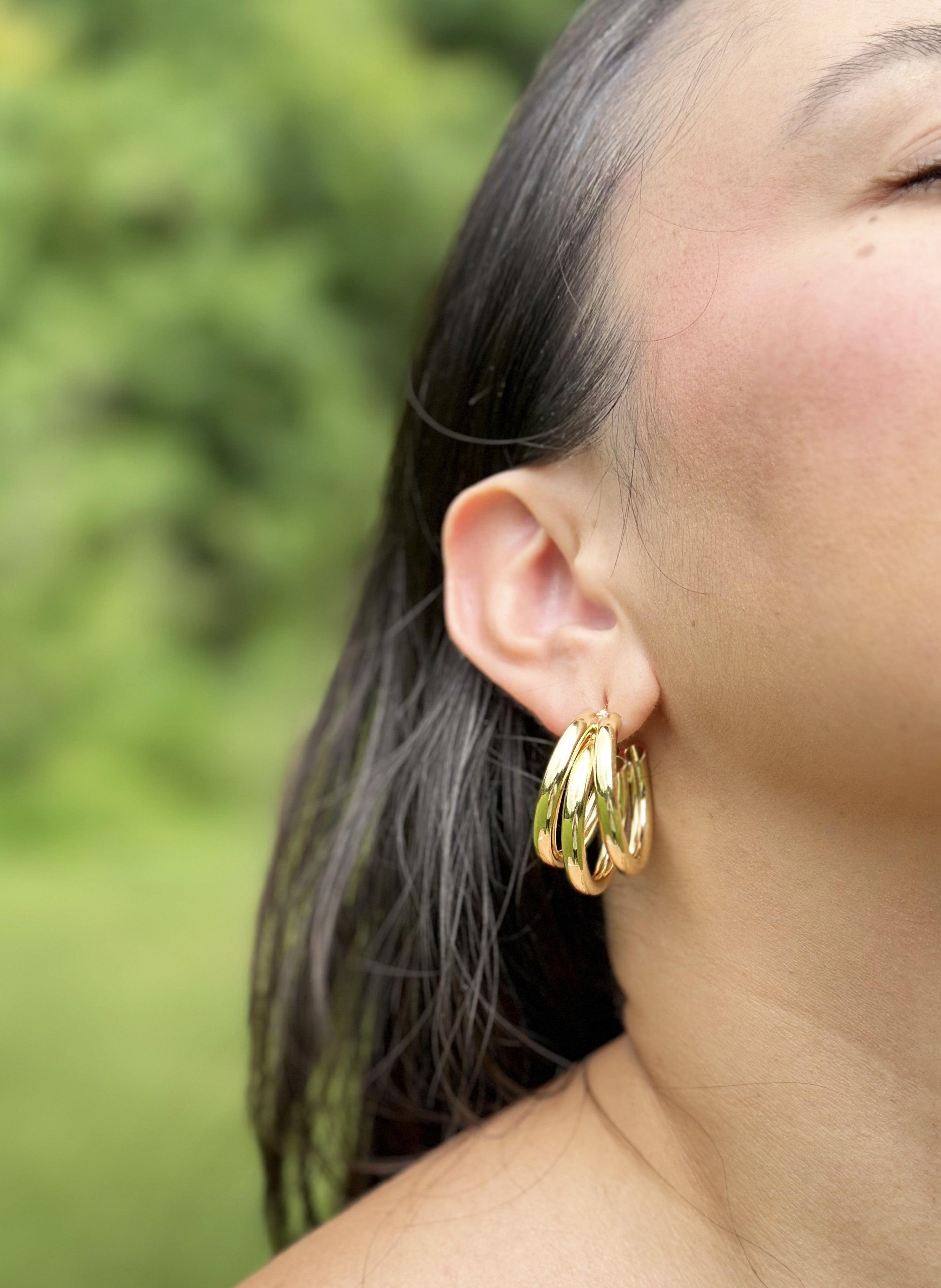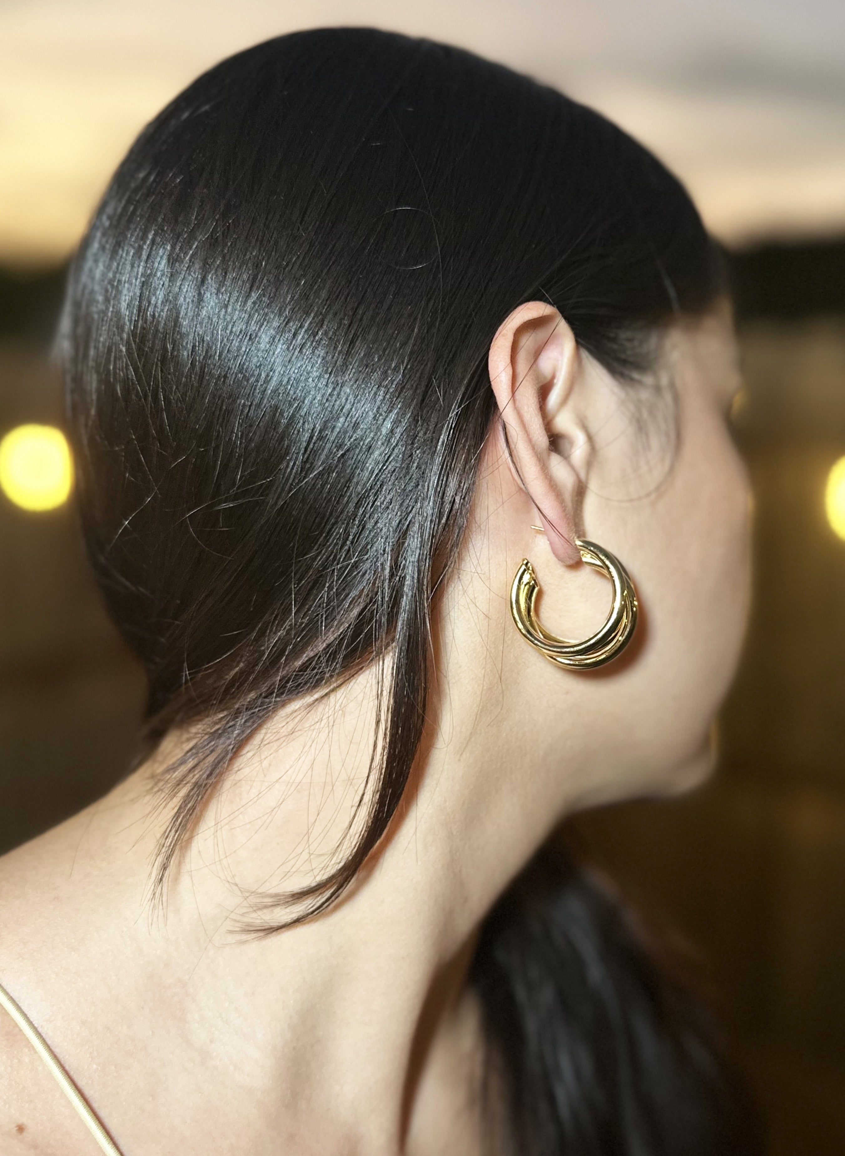 Aretes en forma de candonga hipoalergénicos elaborados en rodio.