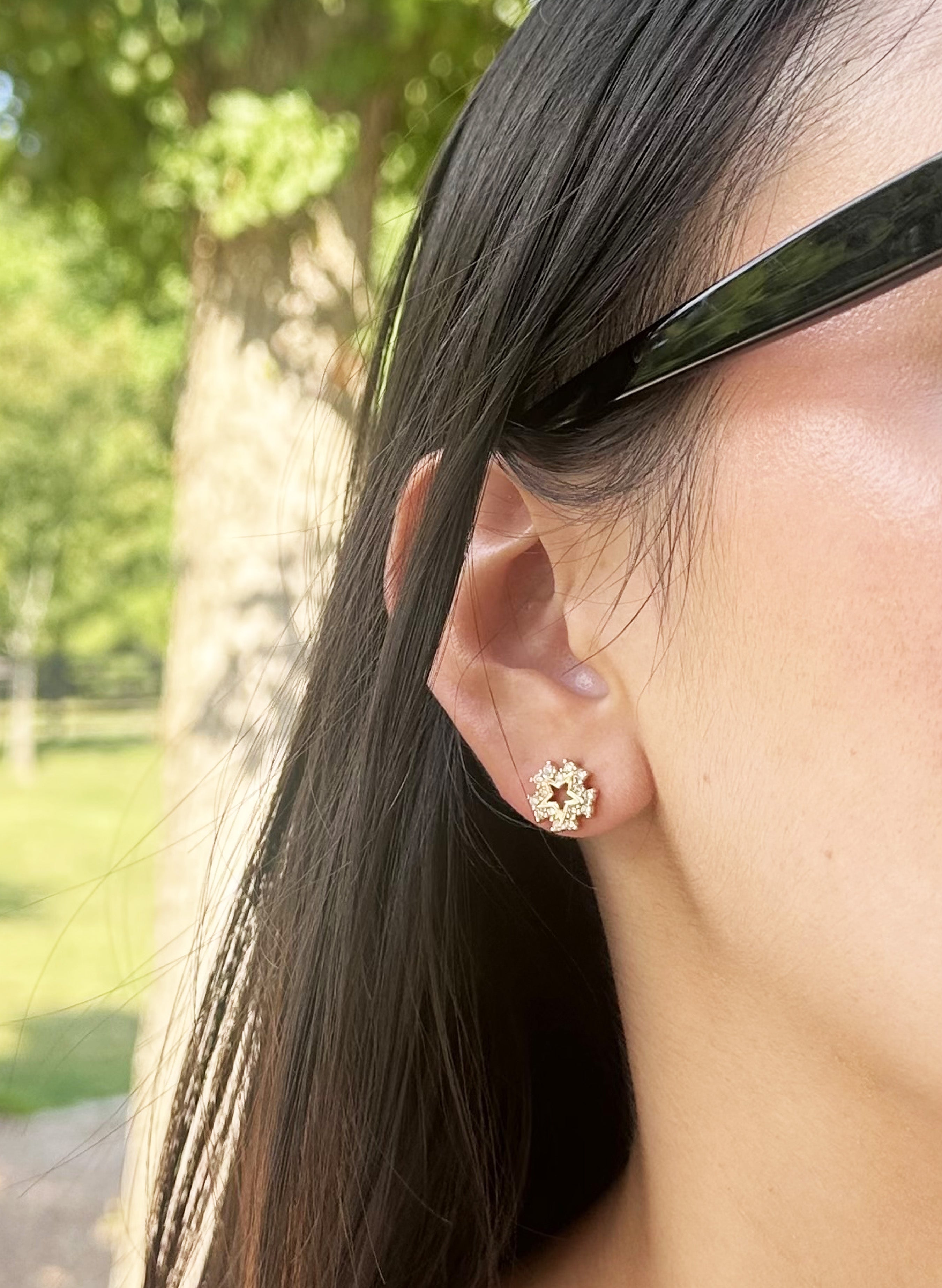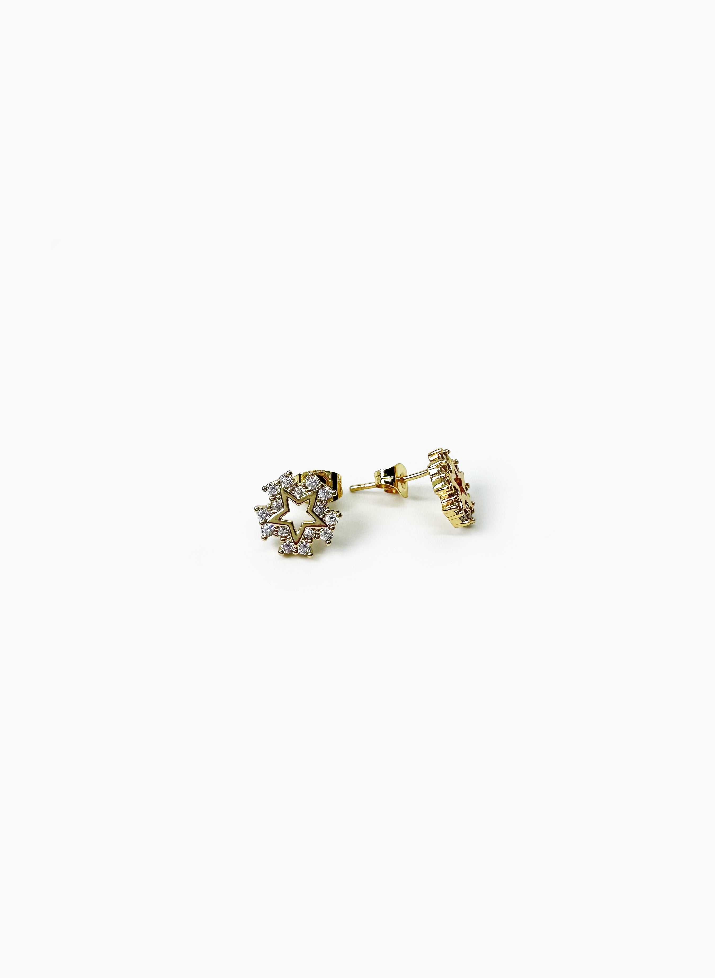 Aretes en forma de topito hipoalergénicos elaborados en rodio con zircones brillantes.
