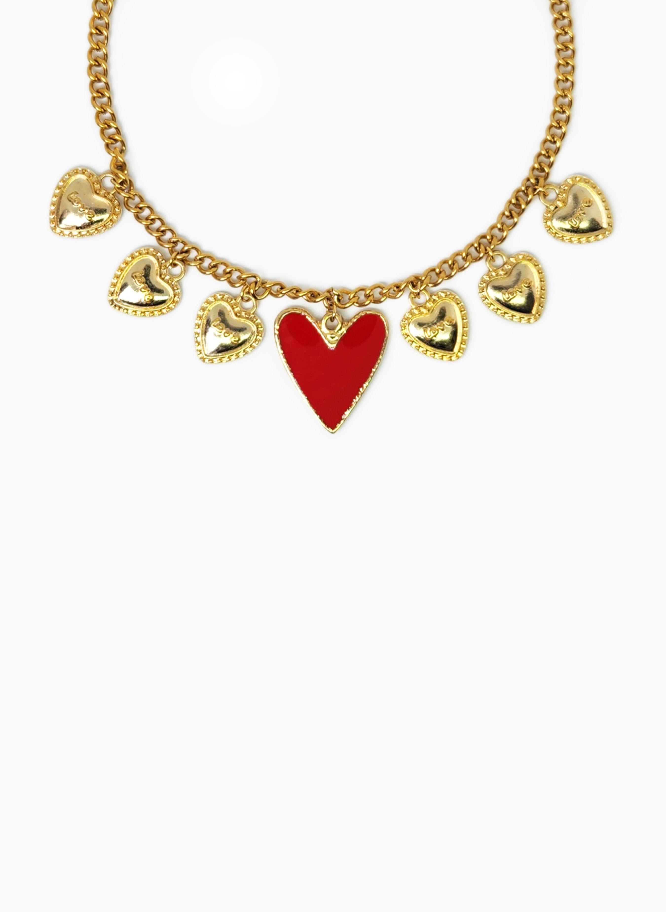 Cadena en acero con dijes de corazón resinado con baño en oro de 24k.