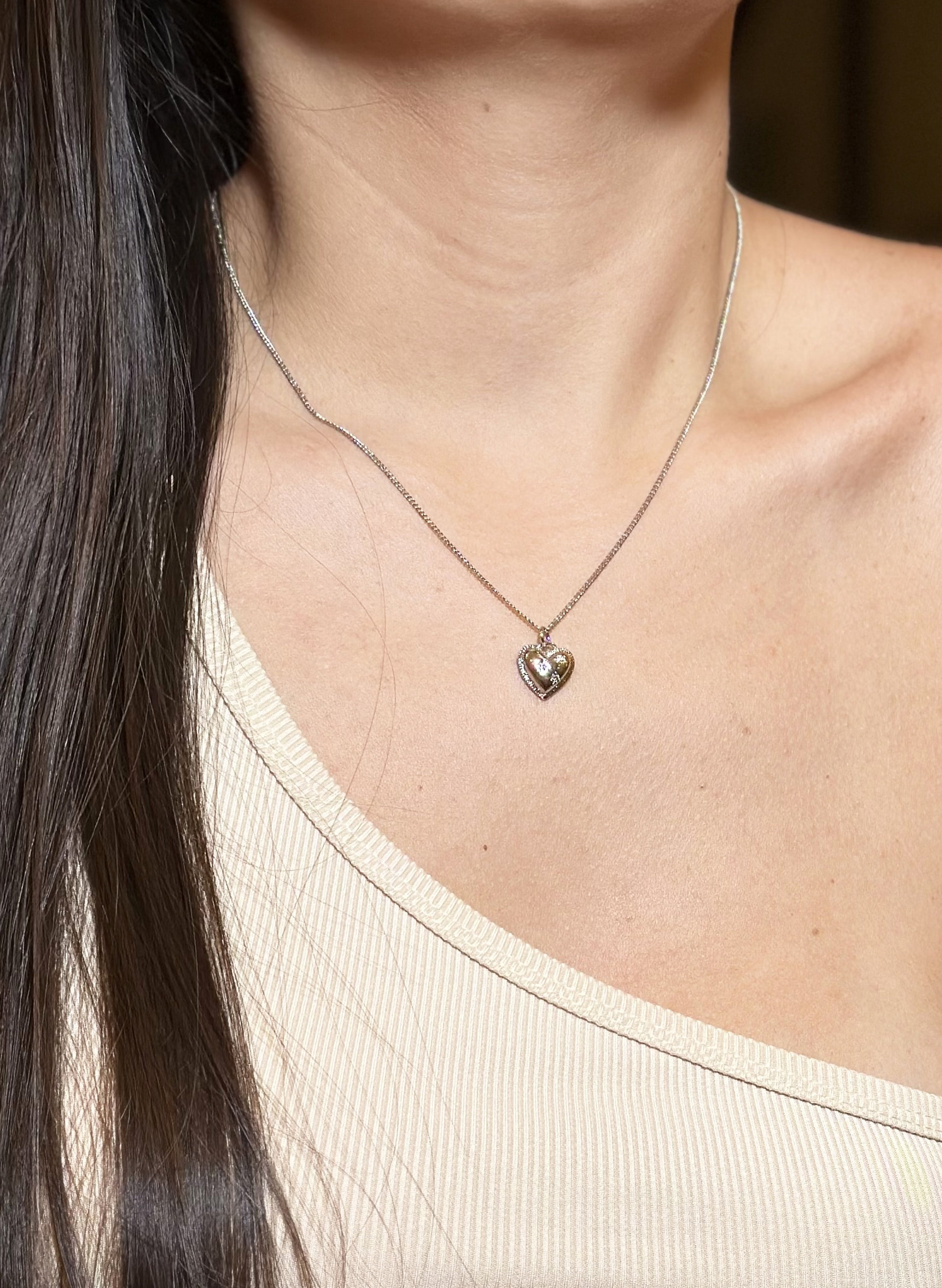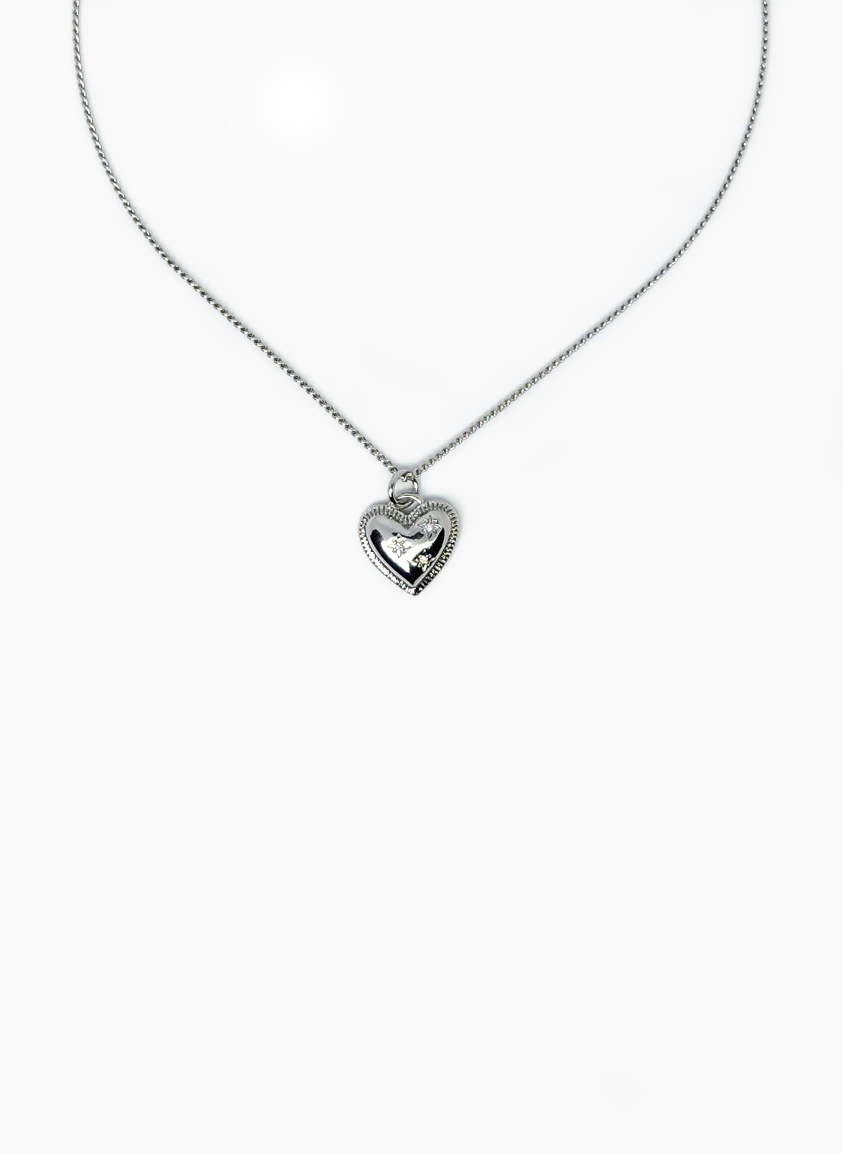Cadena elaborada en acero rodinado plateado, material del dije es plata.