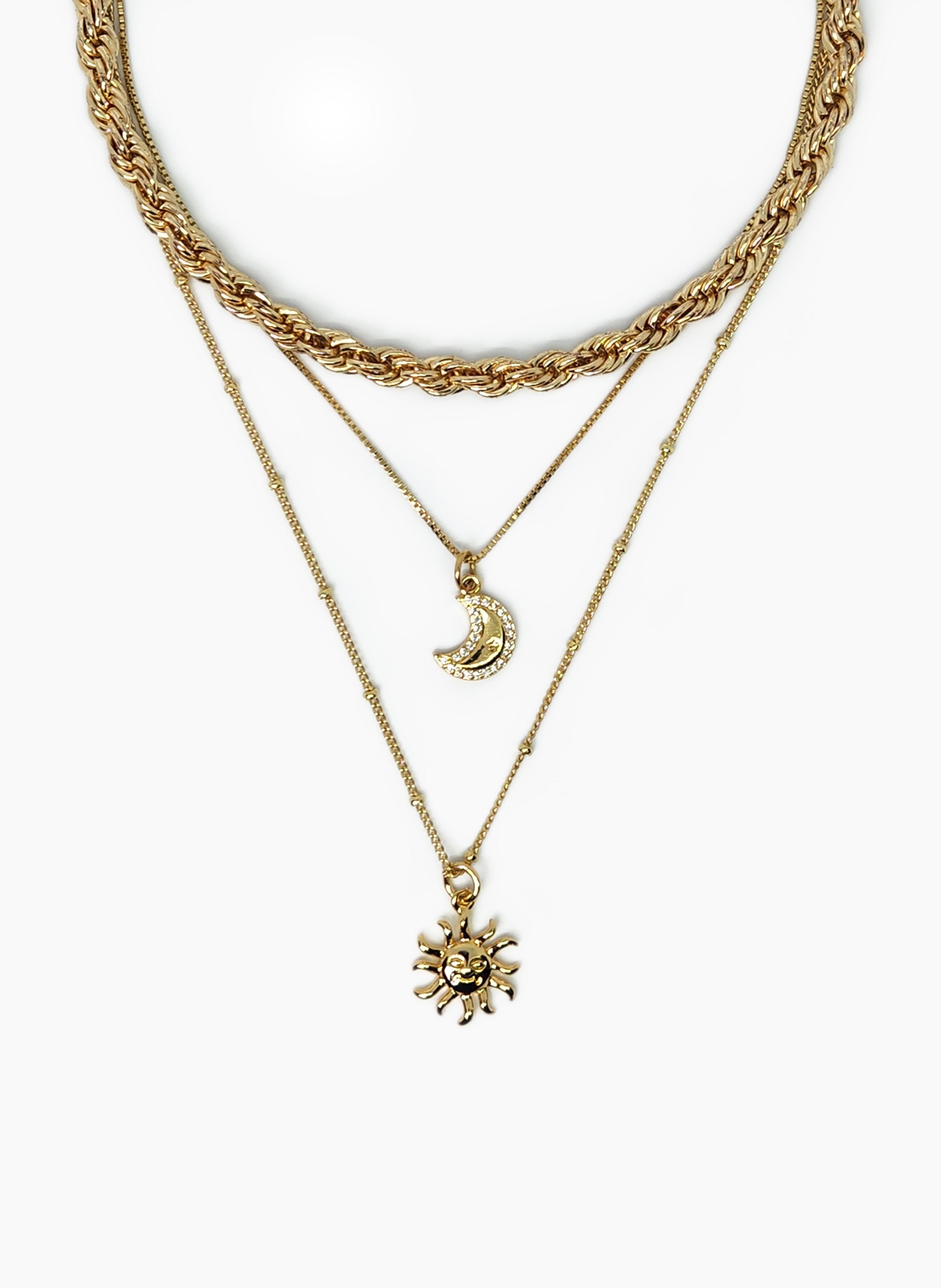 Set de 3 collares que puedes usar juntos o por separado, elaborados en acero rodinado con baño en oro de 24k