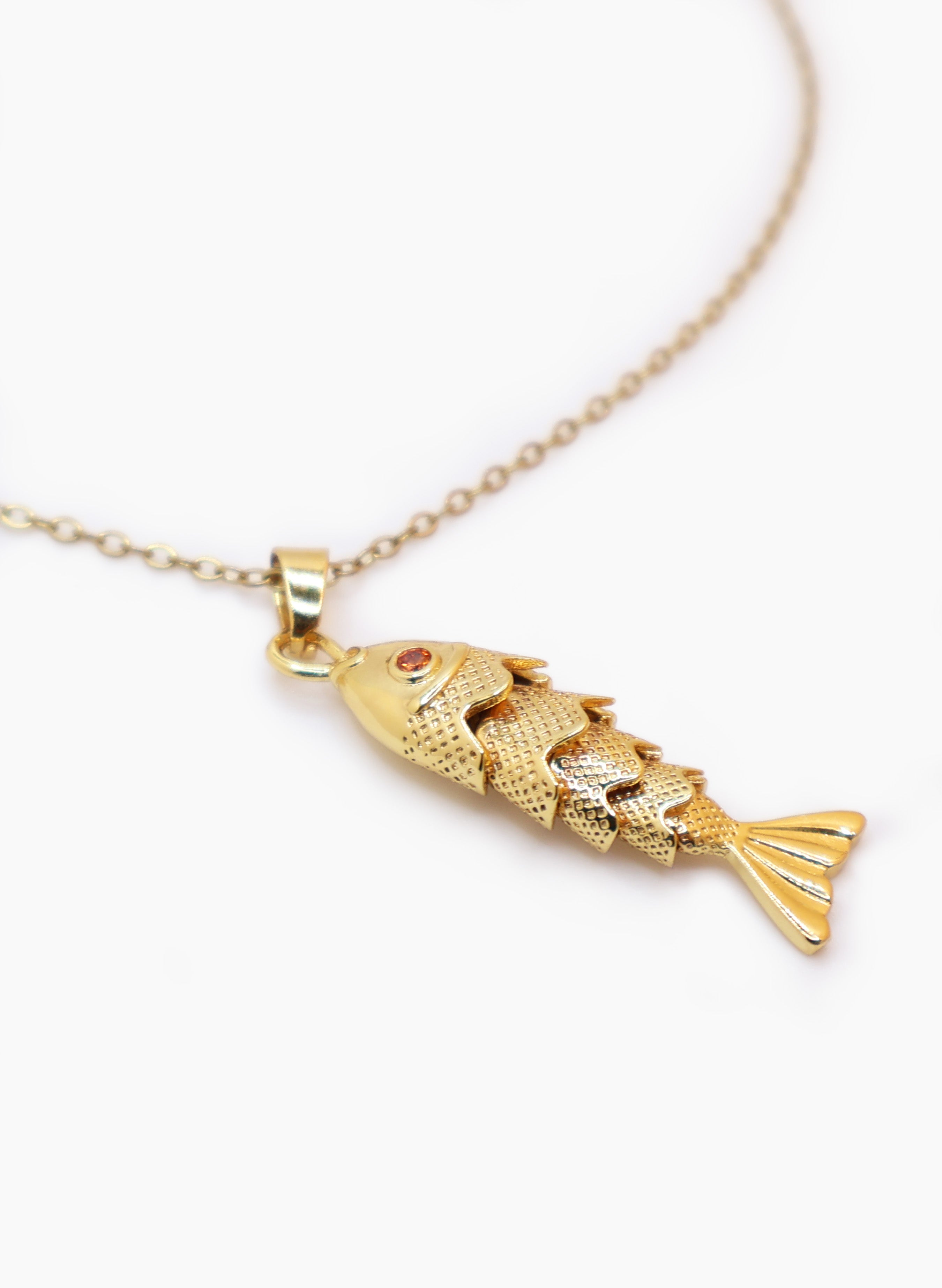 Cadena en acero inoxidable, ajustable, dije pez dorado.