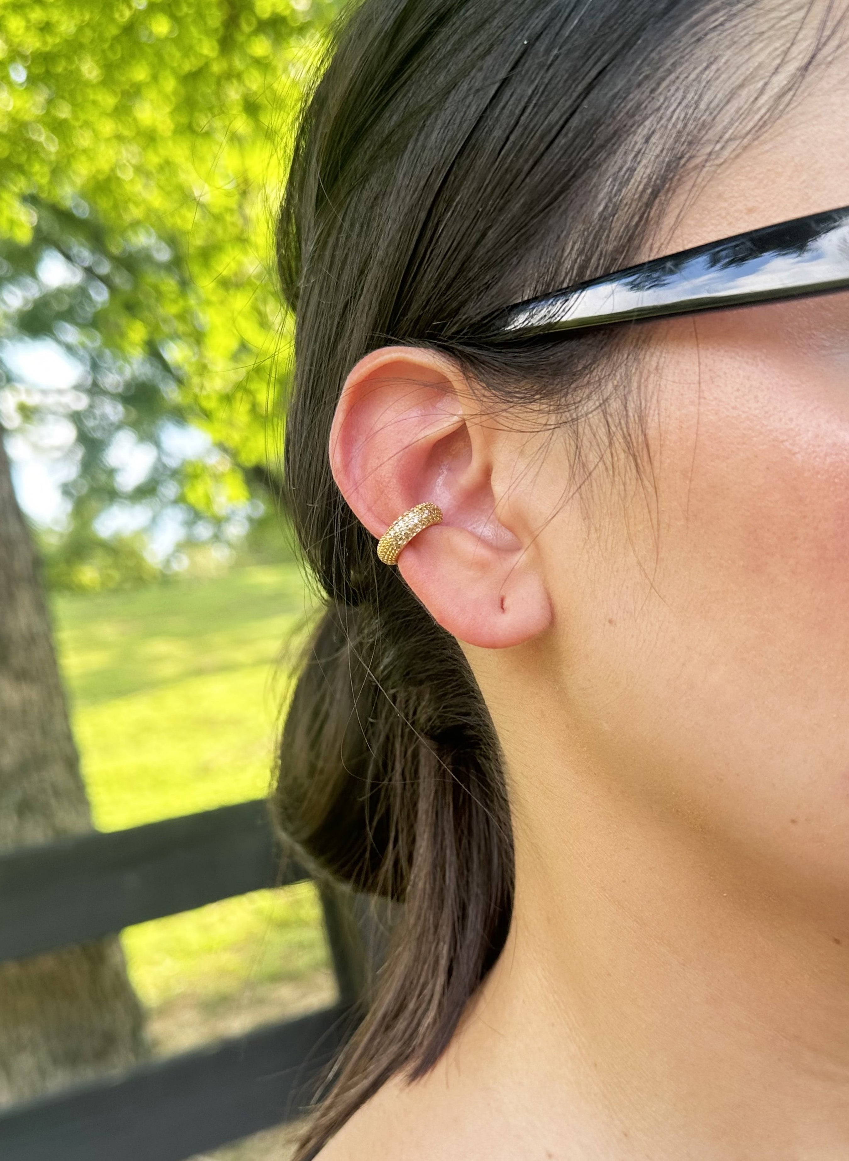 Ear cuff elaborado en rodio con baño en oro y zircones.