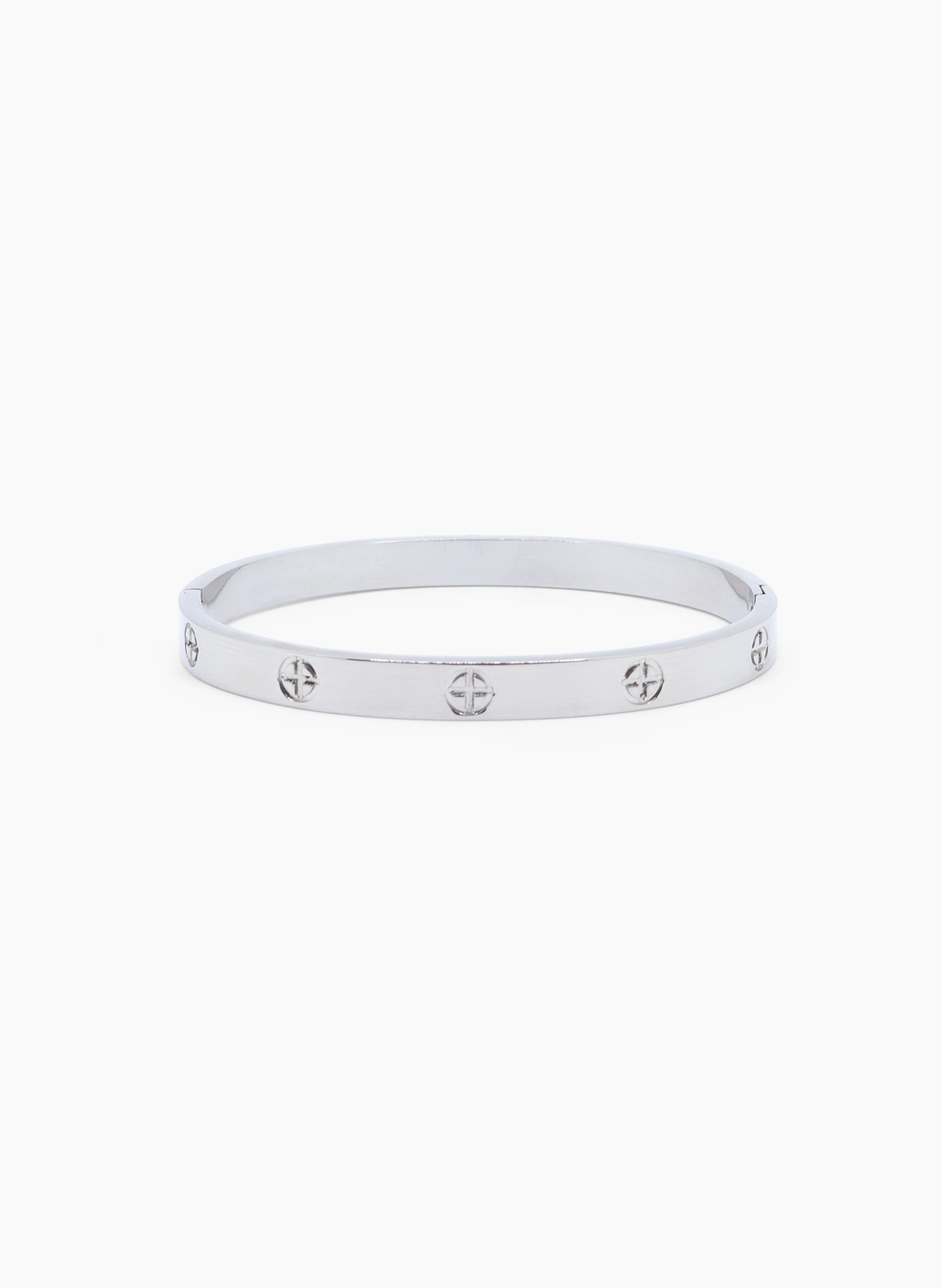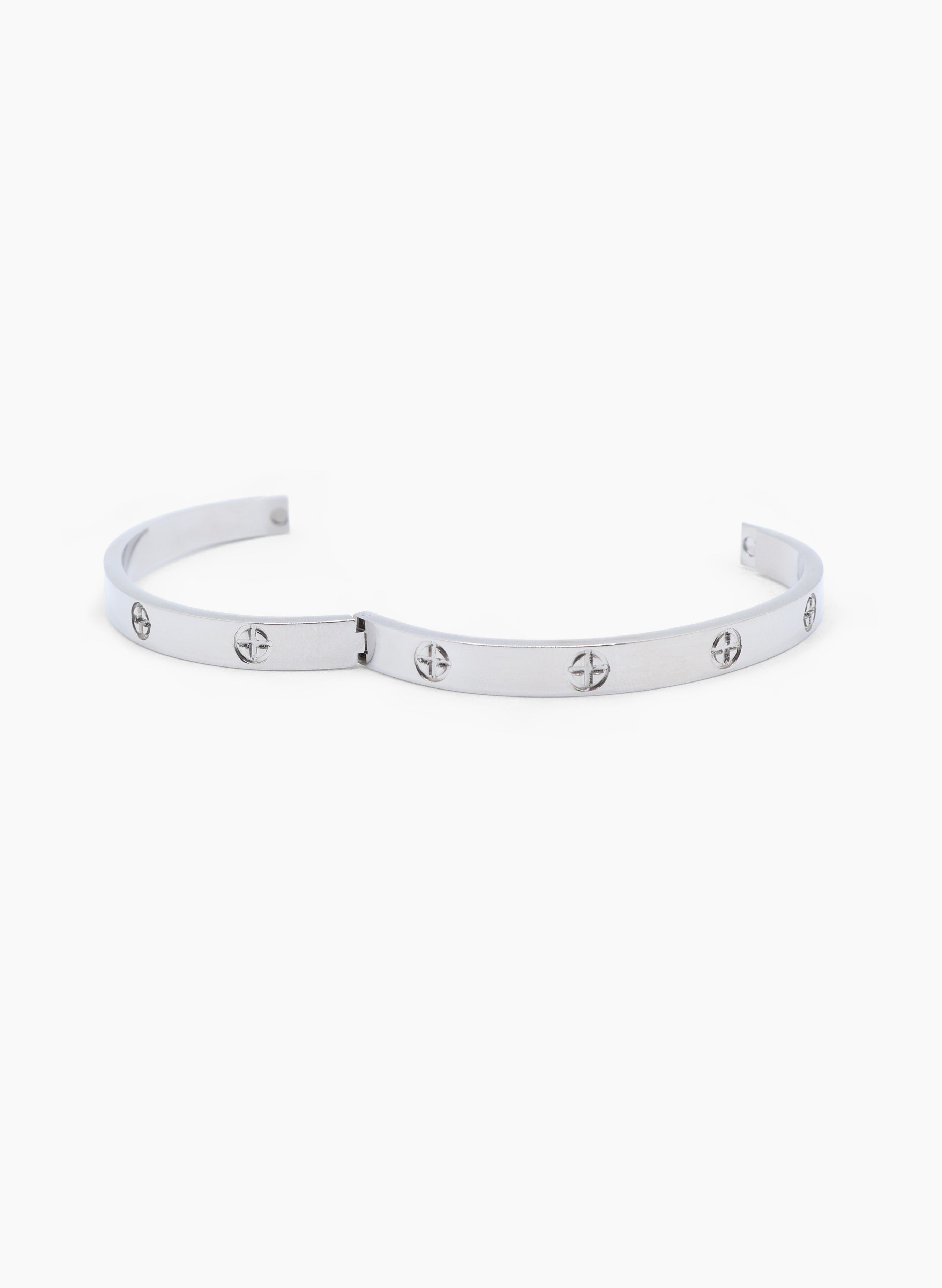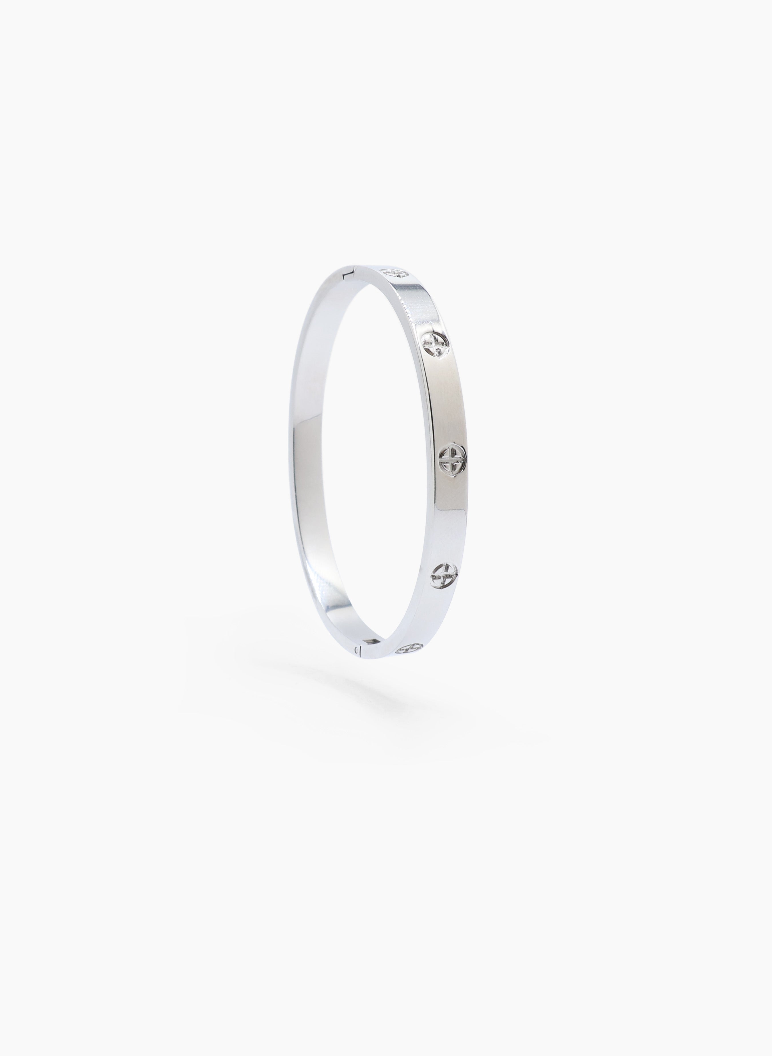Brazalete rígido hecho en acero inoxidable.