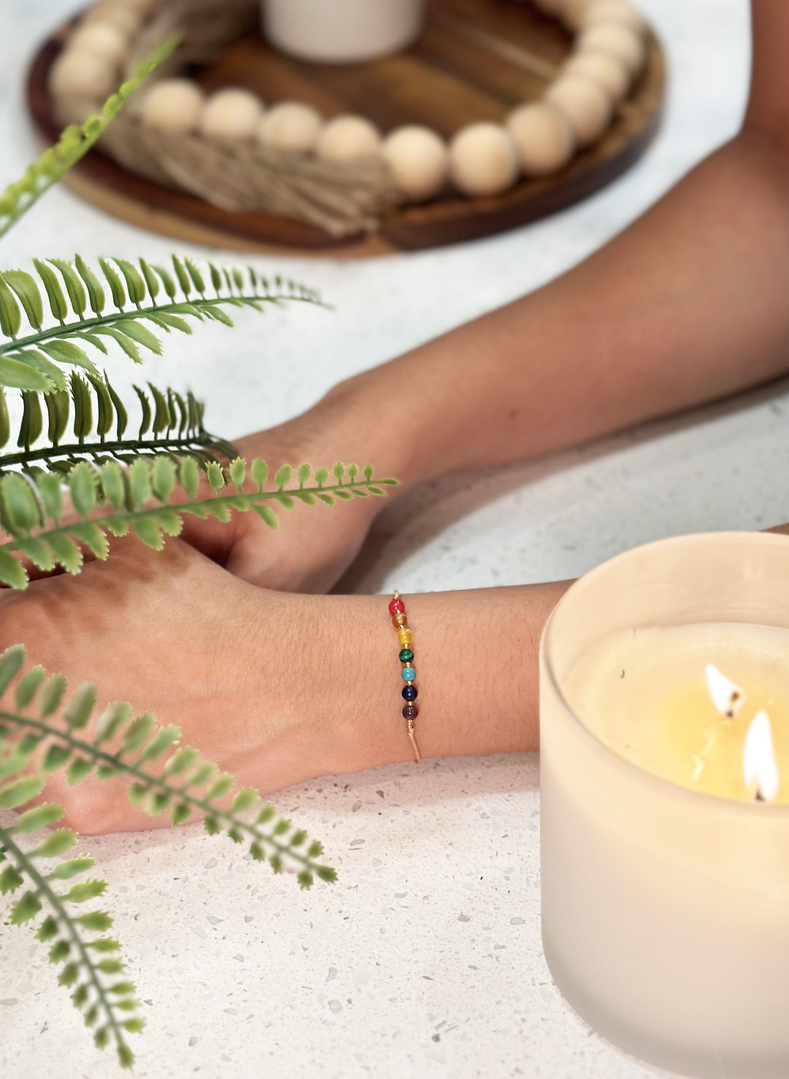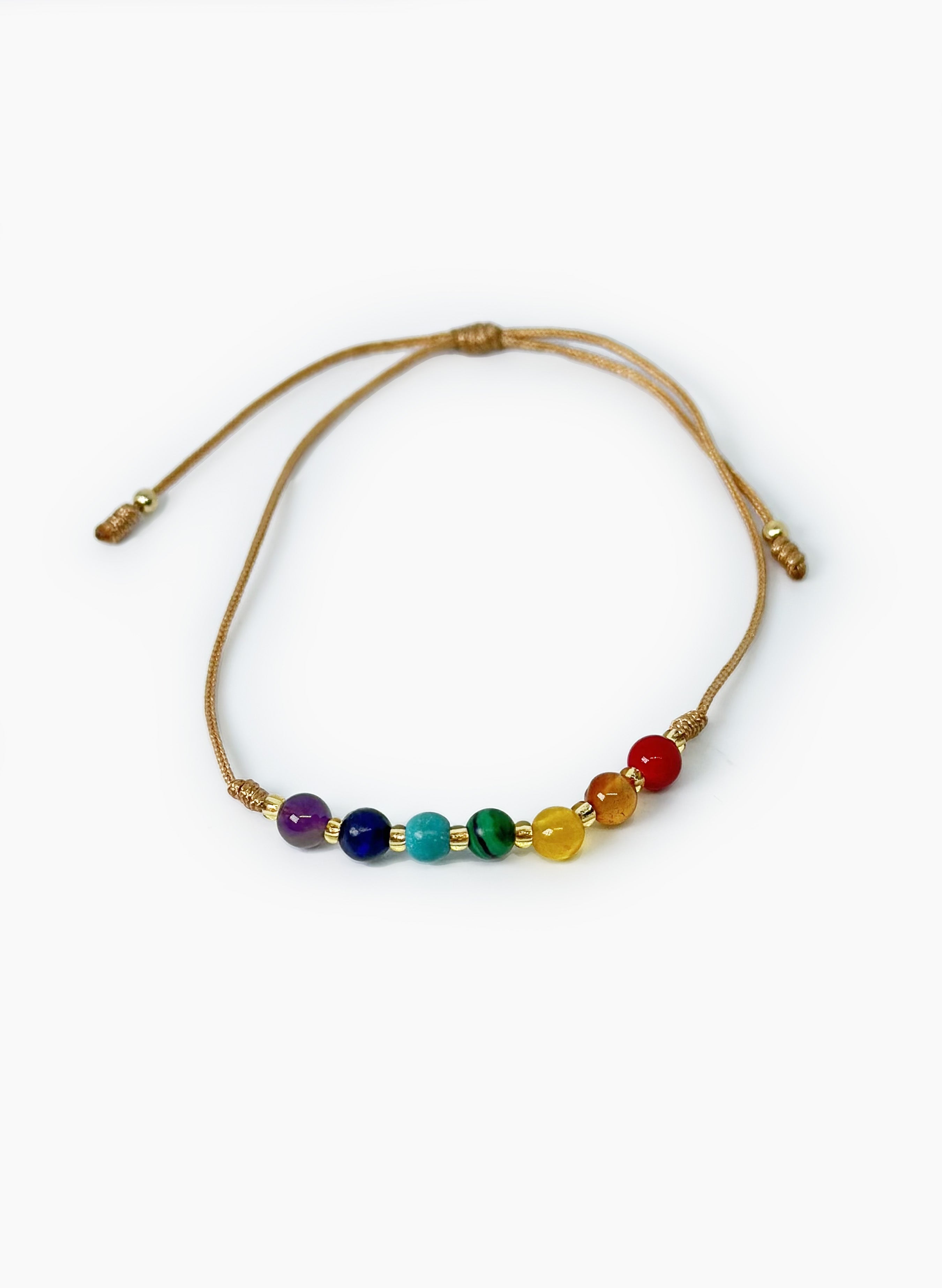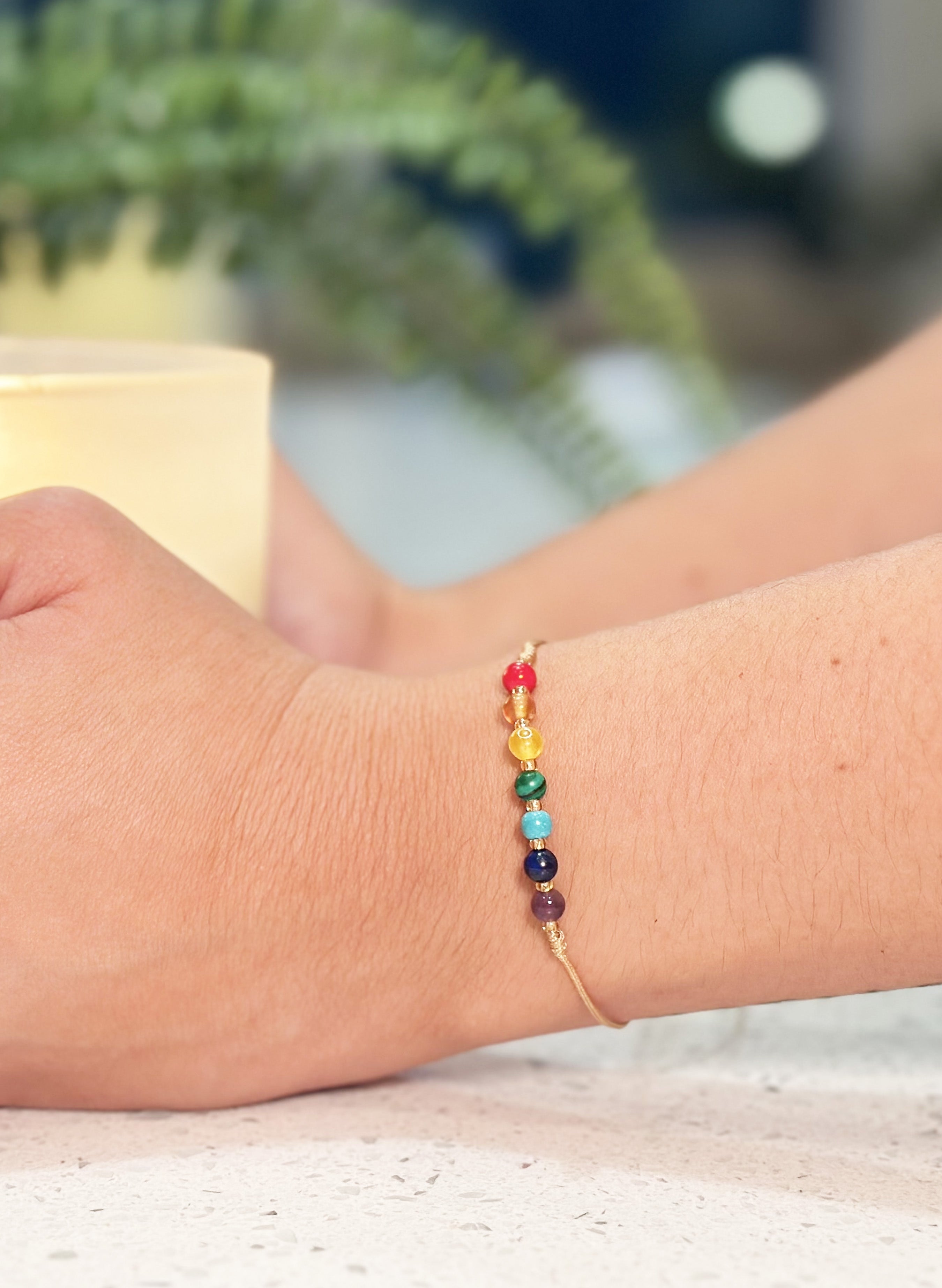 Pulsera hecha a mano, piedras naturales en colores, hilo chino dorado ajustable