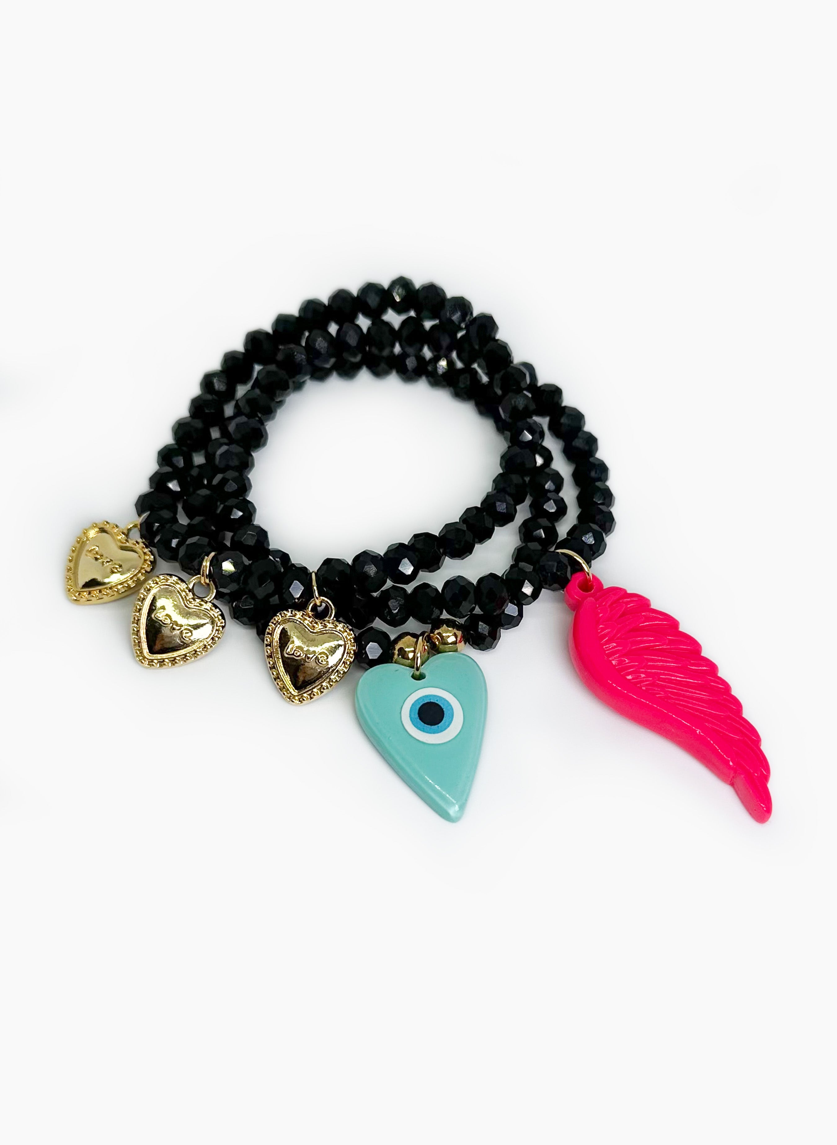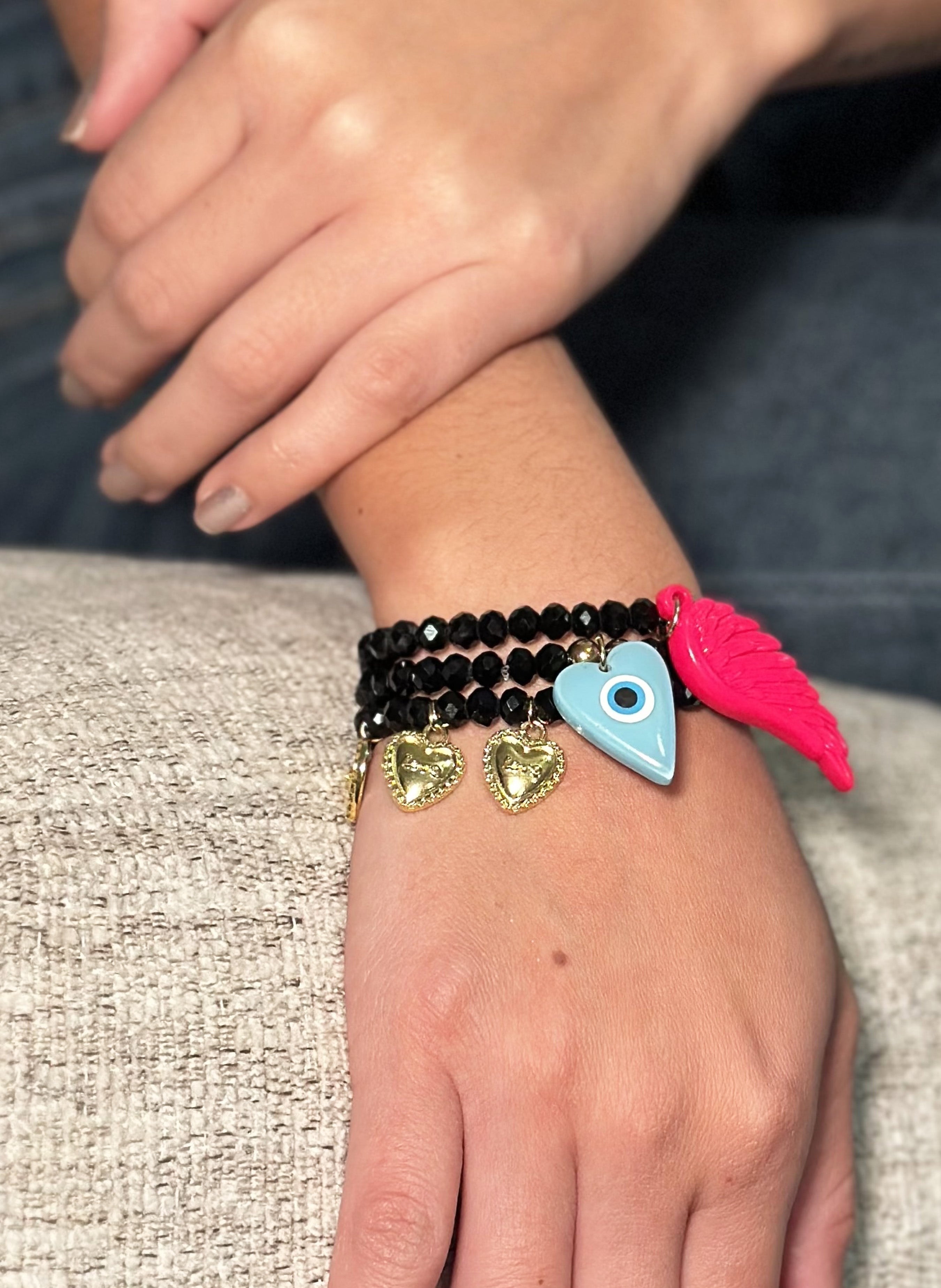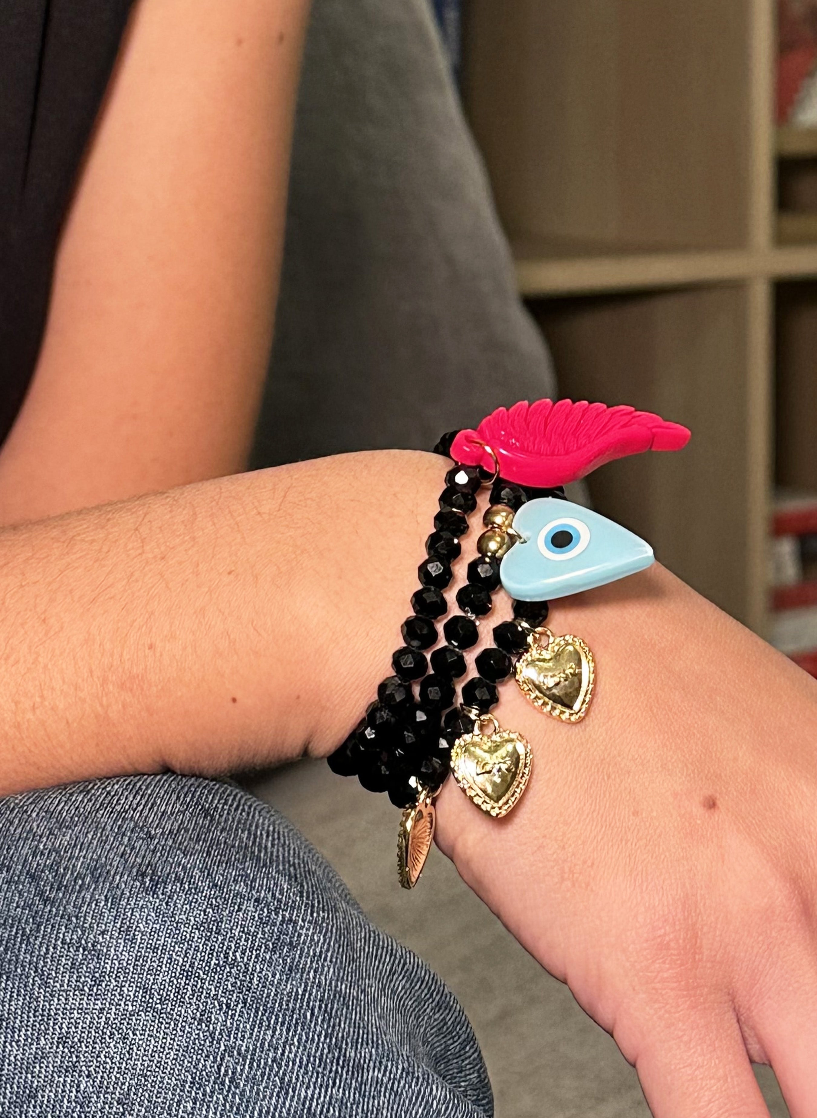 Set de 3 pulseras elásticas elaboradas a mano en cristales de murano negro 6 mm, pueden usarse juntas o por separado.
