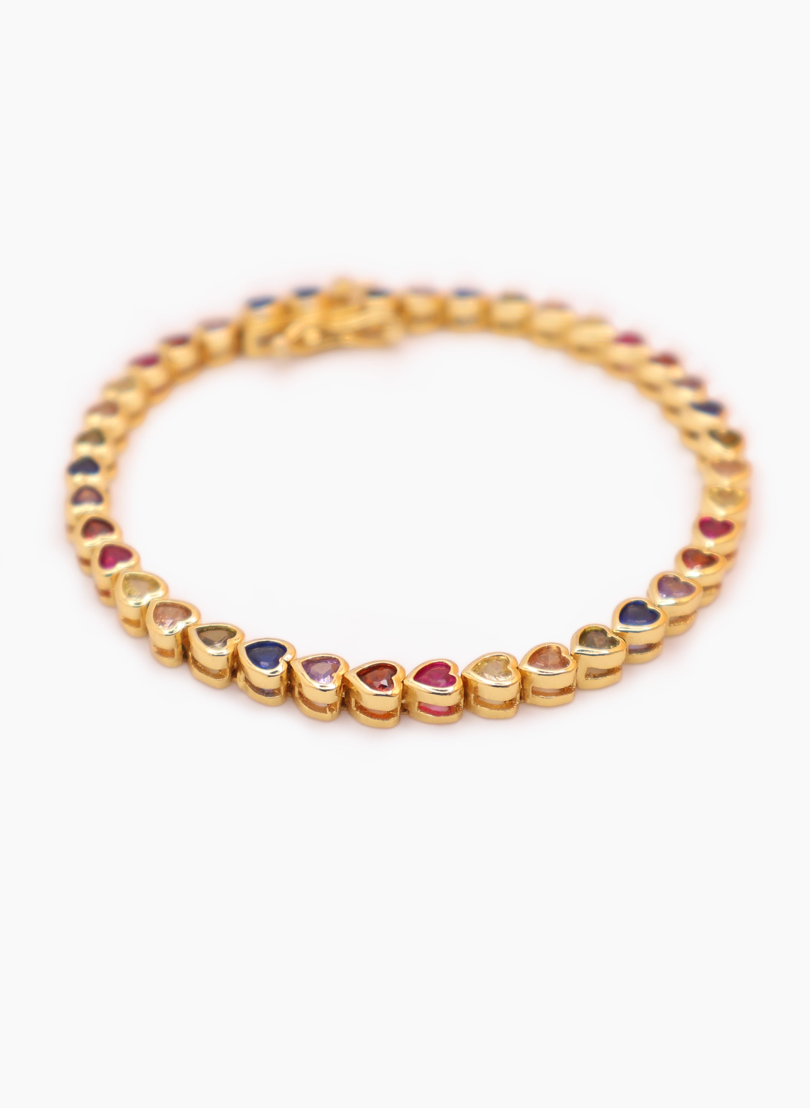 Pulsera en plata 925 con baño en oro y circones de colores.