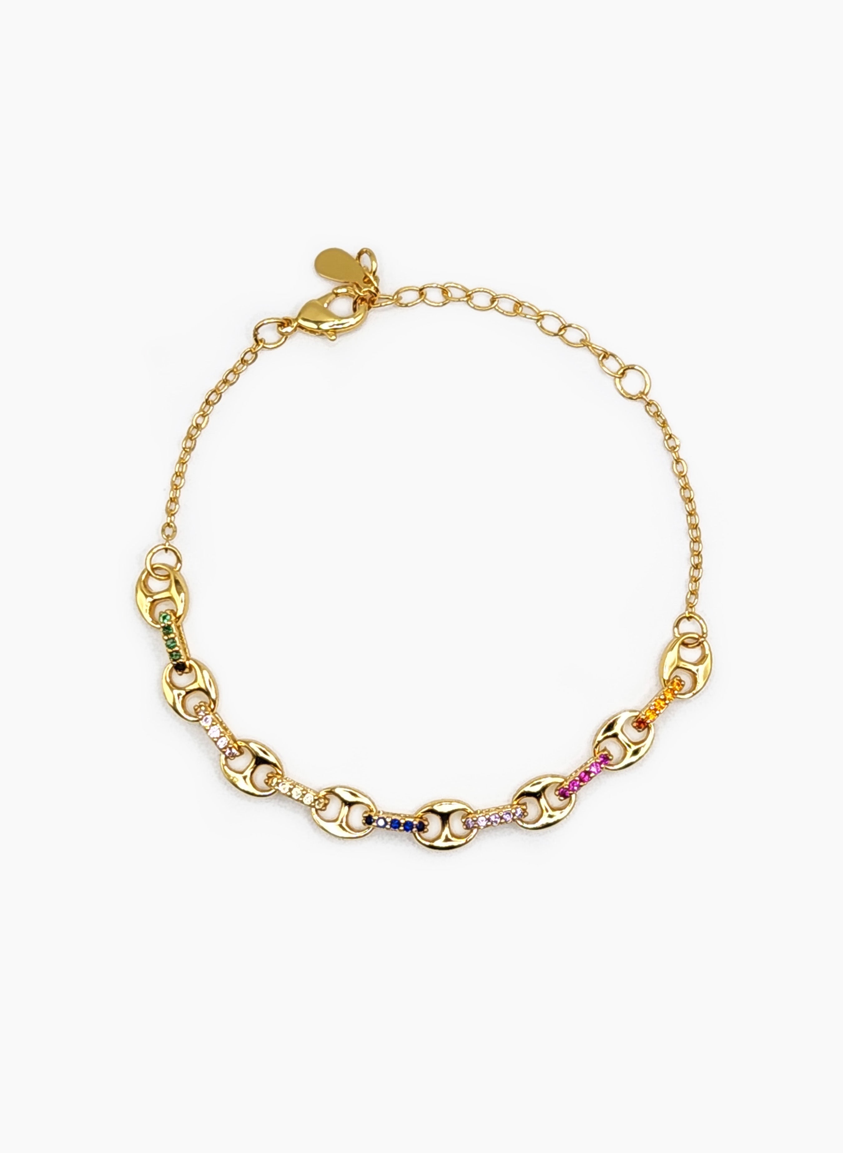 Pulsera ajustable en acero inoxidable con circones en diferentes tonos de colores