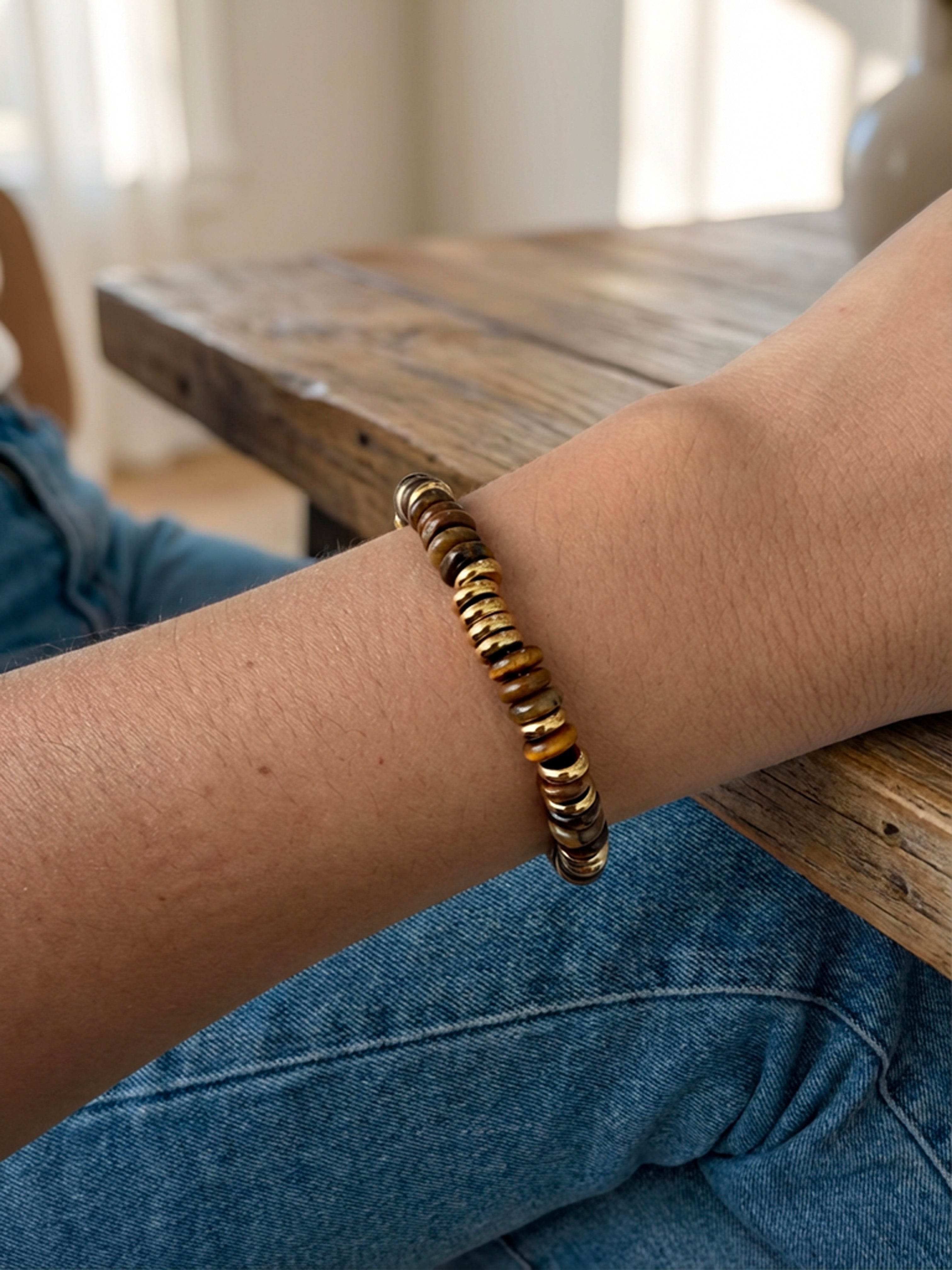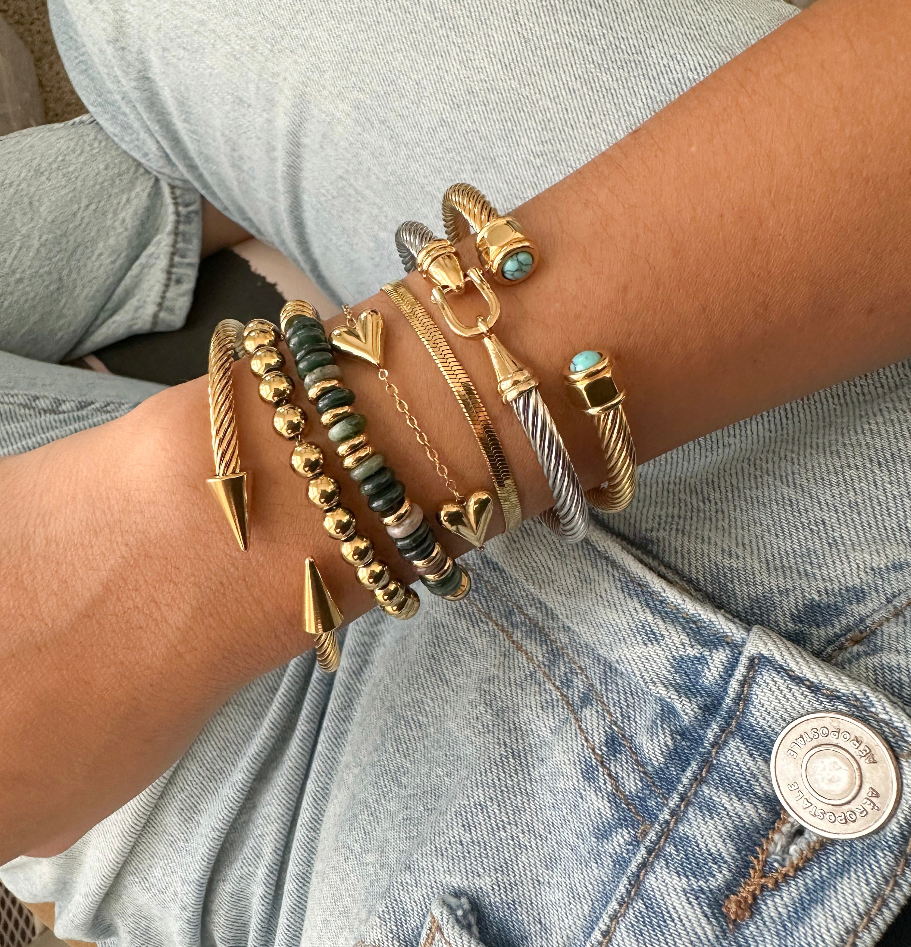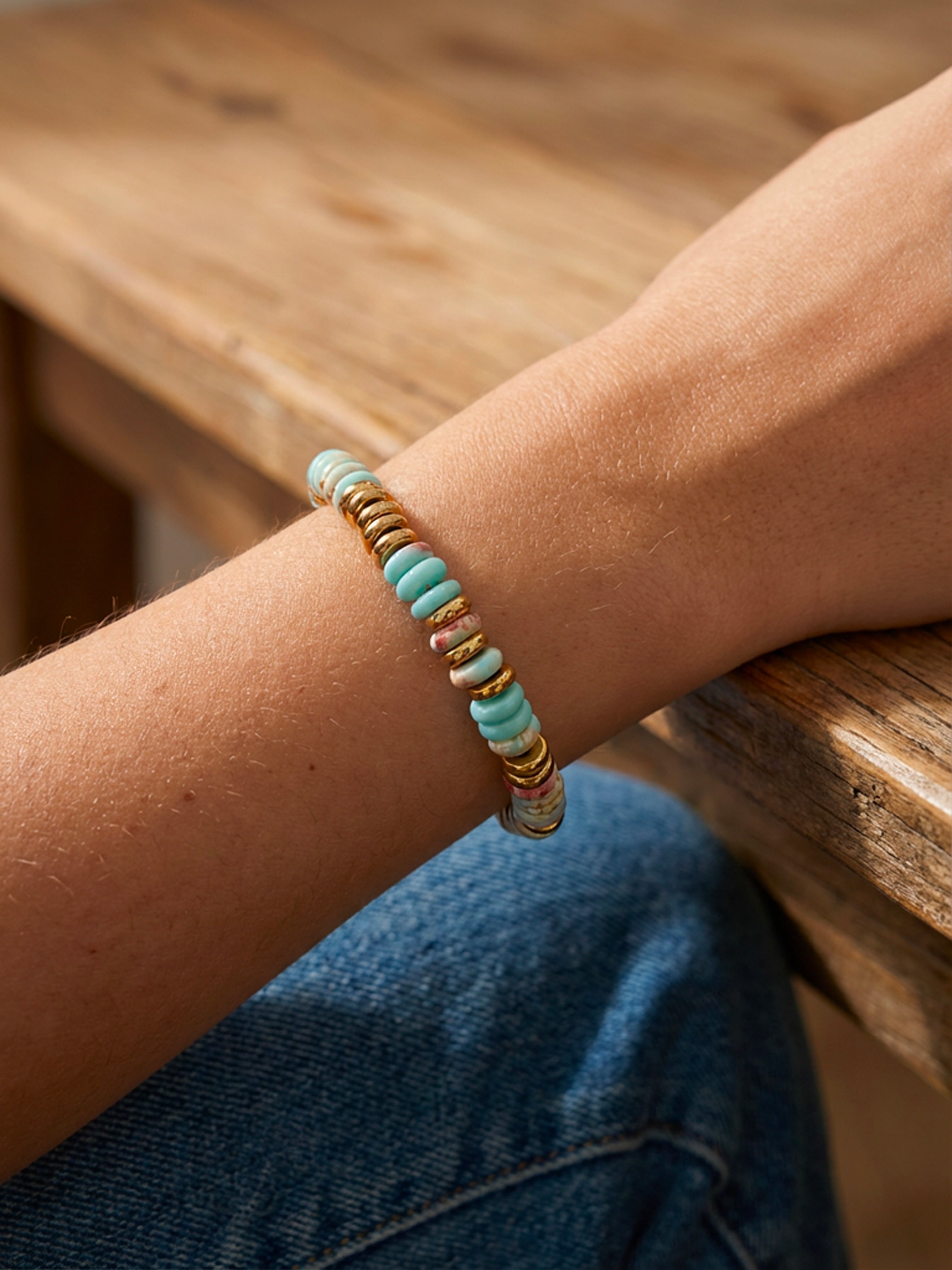 Pulsera ajustable de acero inoxidable con piedras naturales en varios colores. Un toque de color que acompaña tu día a día y eleva cualquier look.