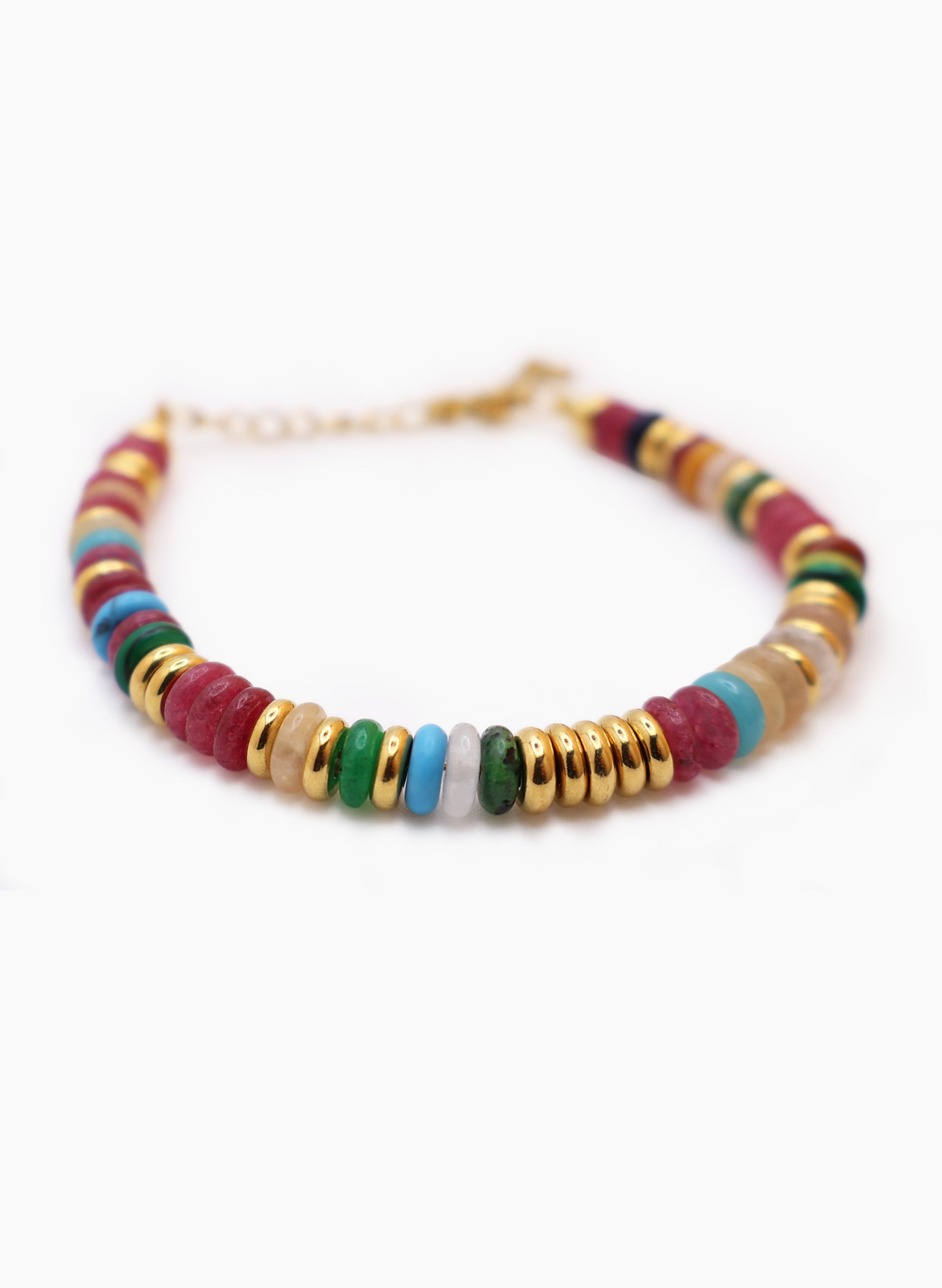 Pulsera ajustable en acero inoxidable con piedras naturales en varios tonos.