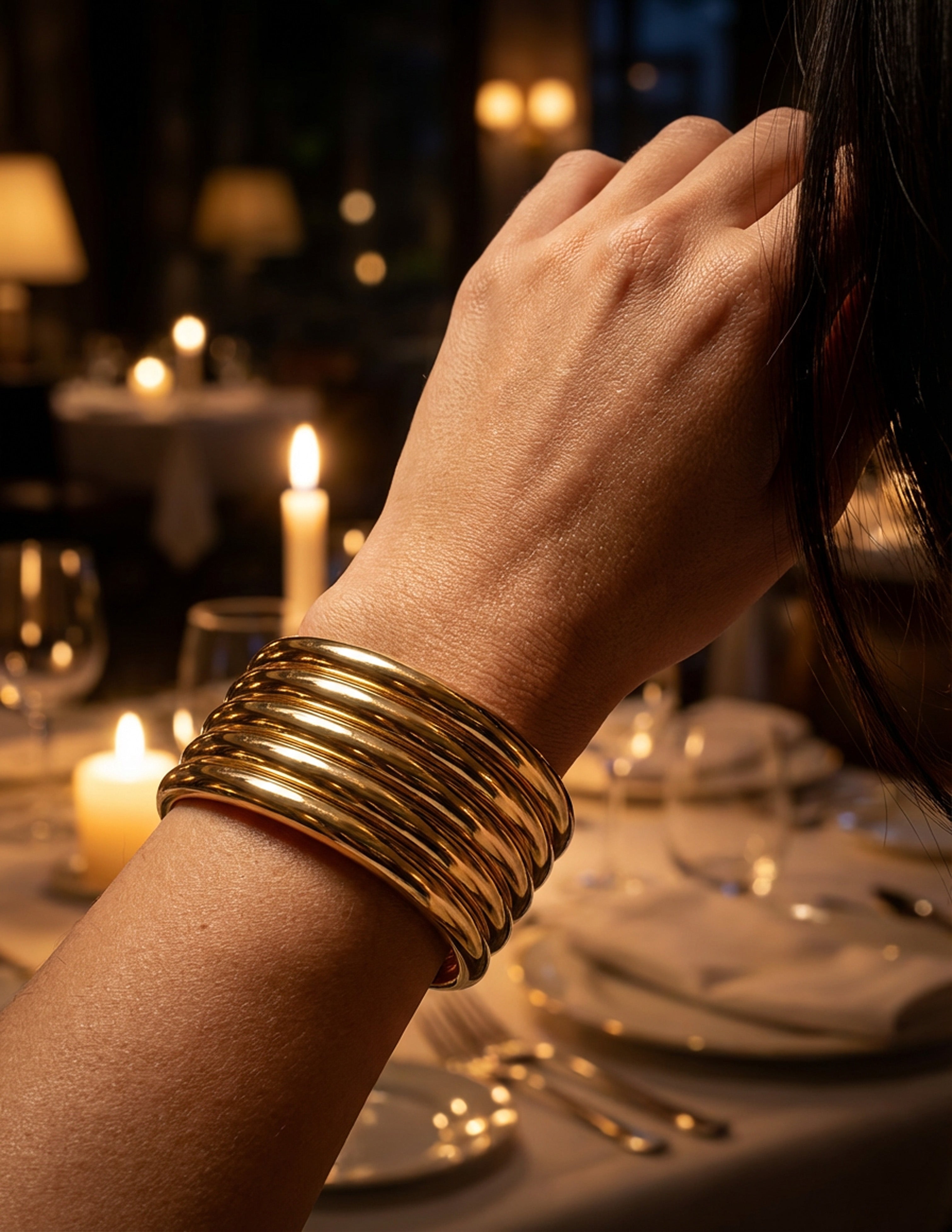 Pulsera ajustable en acero inoxidable, resistente al agua y diseñada para acompañarte en tus celebraciones favoritas. Su diseño versátil te permite combinarla fácilmente con cualquier outfit, y puedes ajustarla para lograr un fit cómodo y perfecto.