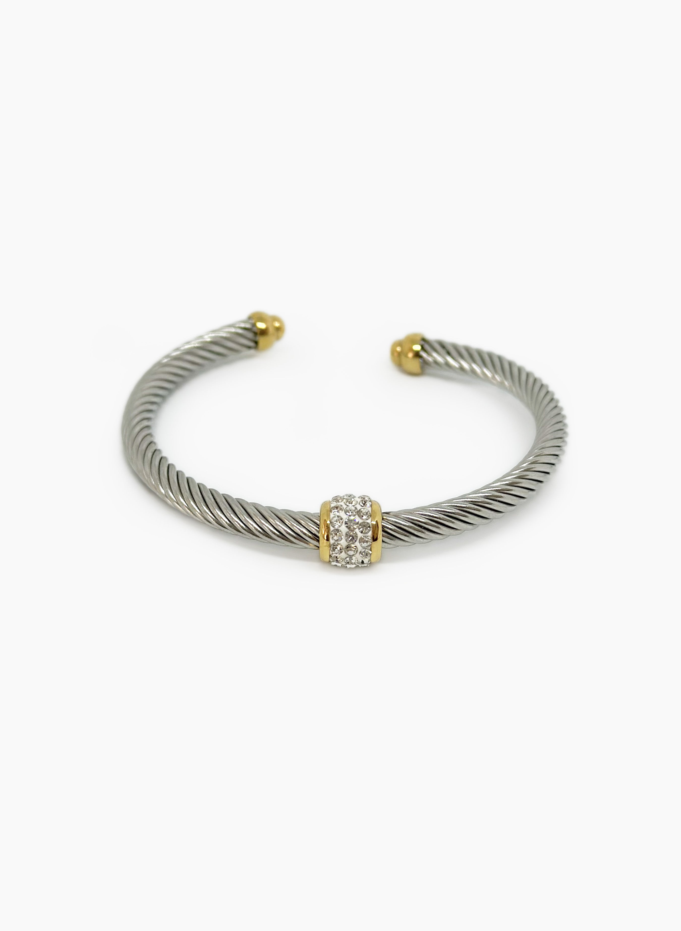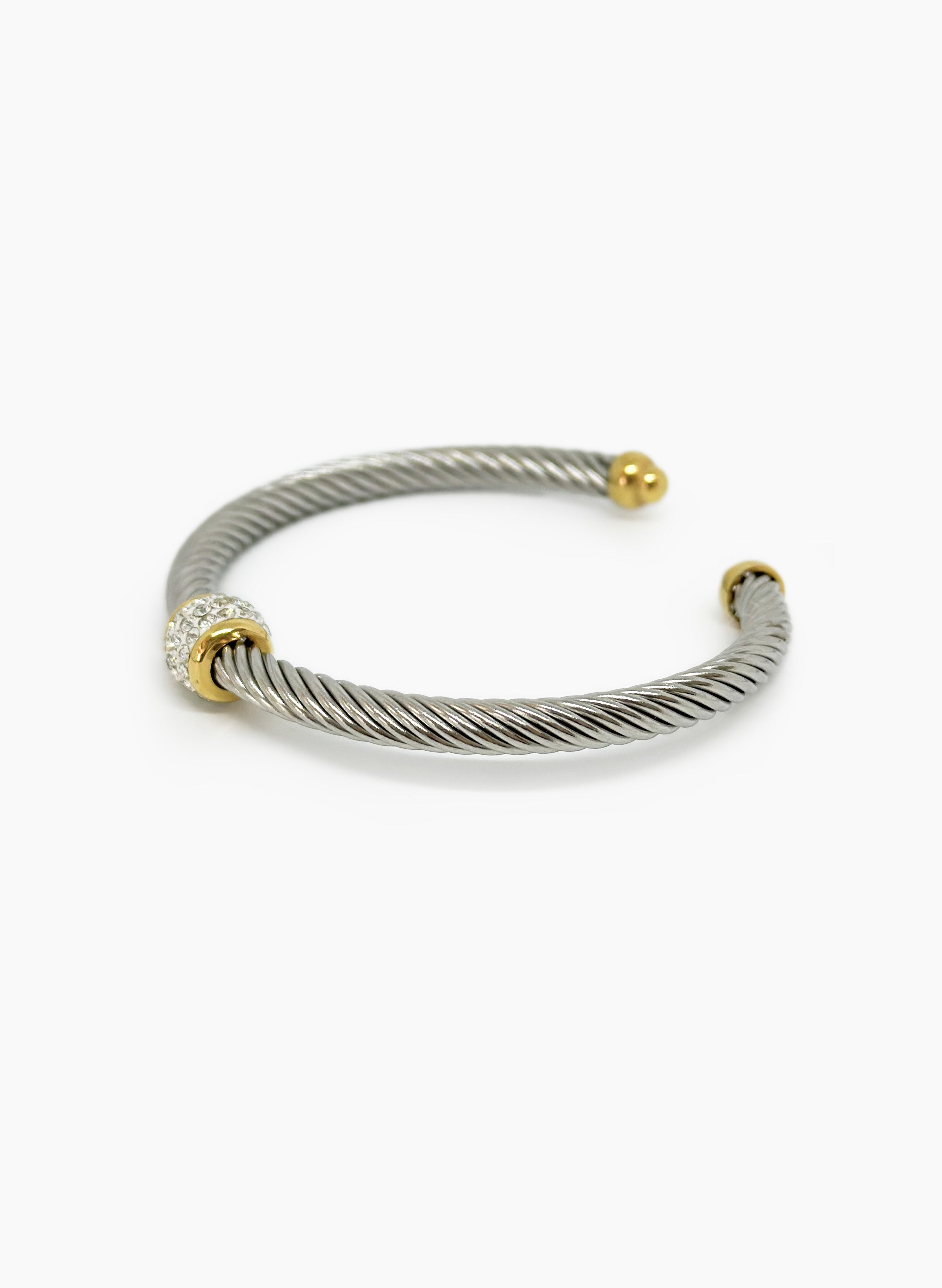 Pulsera Ajustable en acero inoxidable dorado y plateado con circones.